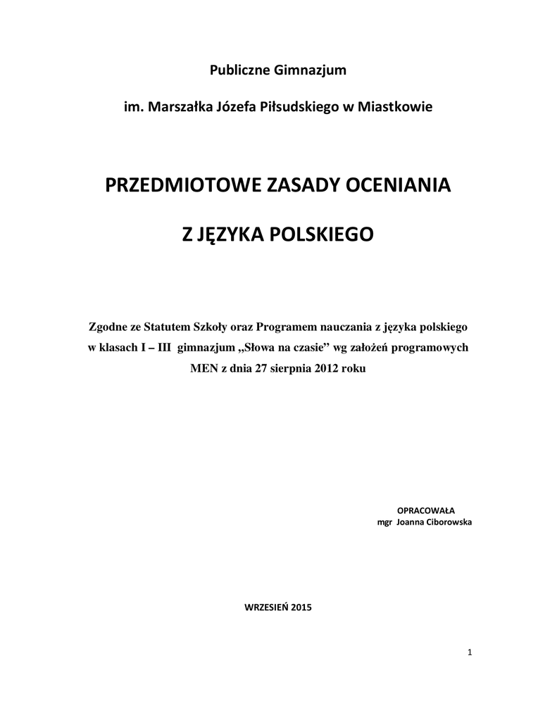 Zgodne ze Statutem Szkoły oraz Programem nauczania z języka polskiego