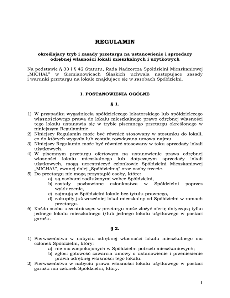 regulamin - Spółdzielnia Mieszkaniowa MICHAŁ