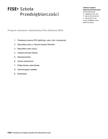 Program szkolenia: Indywidualny Plan Działania (IPD)