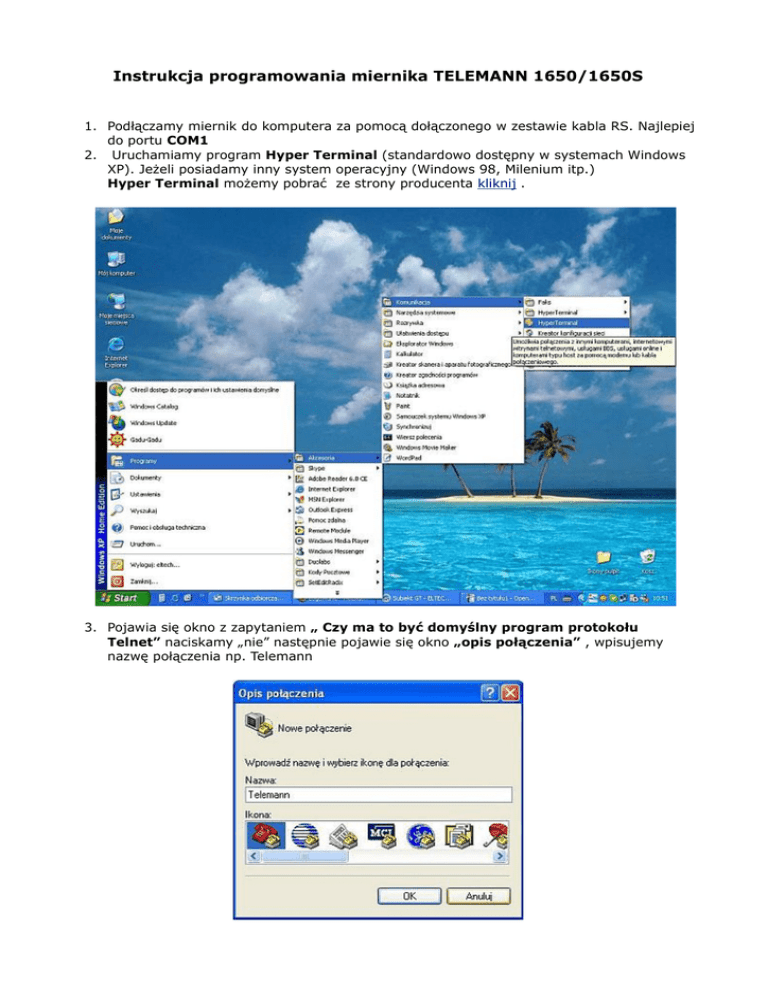 Instrukcja programowania miernika TELEMANN 1650