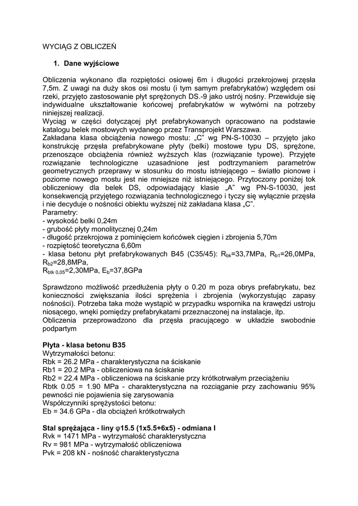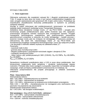 WYCIĄG Z OBLICZEŃ 1. Dane wyjściowe Obliczenia wykonano dla