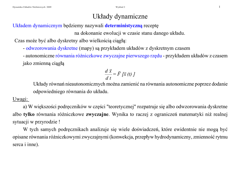 - autonomiczne równania róóniczkowe zwyczajne pierwszego rz“du - przyk»adem uk»adów z czasem