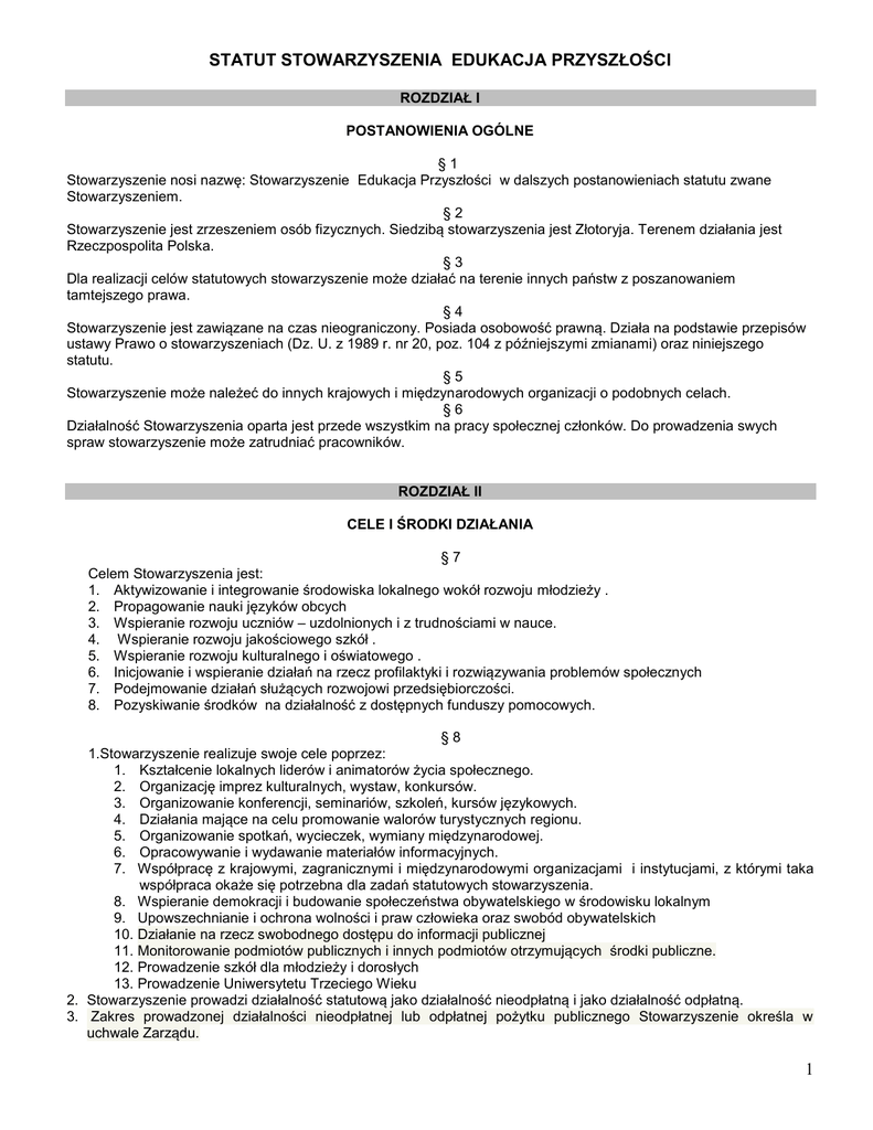 Statut - Stowarzyszenie Edukacja Przyszłości