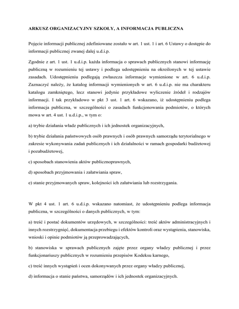 ARKUSZ ORGANIZACYJNY SZKOŁY A INFORMACJA PUBLICZNA