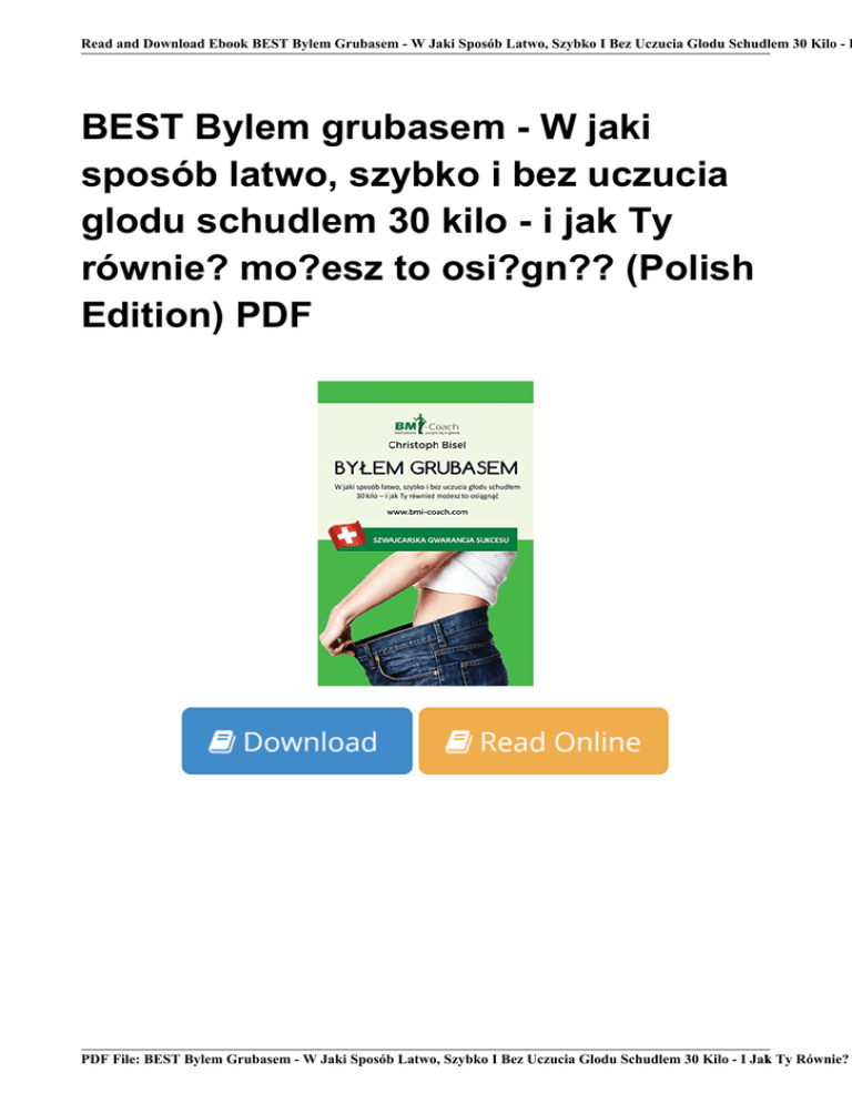 Read and Download Ebook BEST Bylem Grubasem - W Jaki Sposób Latwo, Szybko I Bez Uczucia Glodu Schudlem 30 Kilo - I BEST Bylem grubasem - W jaki sposób latwo, szybko i bez uczucia glodu schudlem 30 kilo - i jak Ty równie? mo?esz to osi?gn?? (Polish Edition) PDF PDF File: BEST Bylem Grubasem - W Jaki Sposób Latwo, Szybko I Bez Uczucia Glodu Schudlem 30 Kilo - I Jak 1 Ty Równie? Read and Download Ebook BEST Bylem Grubasem - W Jaki Sposób Latwo, Szybko I Bez Uczucia Glodu Schudlem 30 Kilo - I BEST Bylem grubasem - W jaki sposób latwo, szybko i bez uczucia glodu schudlem 30 kilo - i jak Ty równie? mo?esz to osi?gn?? (Polish Edition) by by By Christoph Bisel PDF File: BEST Bylem Grubasem - W Jaki Sposób Latwo, Szybko I Bez Uczucia Glodu Schudlem 30 Kilo - I Jak 2 Ty Równie? Read and Download Ebook BEST Bylem Grubasem - W Jaki Sposób Latwo, Szybko I Bez Uczucia Glodu Schudlem 30 Kilo - I BEST Bylem grubasem - W jaki sposób latwo, szybko i bez uczucia glodu schudlem 30 kilo - i jak Ty równie? mo?esz to osi?gn?? (Polish Edition) PDF BEST Bylem grubasem - W jaki sposób latwo, szybko i bez uczucia glodu schudlem 30 kilo i jak Ty równie? mo?esz to osi?gn?? (Polish Edition) by by By Christoph Bisel Od zawsze bylem grubasem. Niezaleznie od tego co sam o sobie sadzilem, dalo sie to wyczytac w oczach innych ludzi. Rok 2014 rozpoczalem z waga 141,3 kg. Moja rekordowa - 160 kg osiagnalem juz jednak ponad dekade wczesniej. W miedzyczasie udalo mi sie zbic moja wage do 110 kg. Ostatni raz widzialem taka liczbe na wyswietlaczu ponad 20 lat temu. Czy nadal uwazam sie za grubasa? Obiektywnie patrzac - tak. Moje BMI (wspólczynnik masy ciala) nadal ma wartosc, która klasyfikuje sie jako chorobliwa. Kiedy jednak subiektywnie patrze na to, jak zmieniala sie moja waga wydaje sie sobie dosyc szczuply. A wiec równiez waga moze byc wartoscia wzgledna. Pisze te ksiazke z trzech powodów. Po pierwsze jestem bardzo wdzieczny, ze w koncu udalo mi sie znalezc sposób na utrate wagi, jej utrzymanie oraz zrzucenie dodatkowych kilogramów gdy tylko o tym zadecyduje. Chcialbym podzielic sie ta wiedza z innymi ludzmi oraz podziekowac tym, którzy zapoznali mnie z ta dieta. Jestem przekonany, ze ta sama droga moze okazac sie dobra takze dla innych ludzi, niezaleznie od tego czy chcieliby zgubic jedynie kilka dodatkowych kilogramów czy tez zmagaja sie z wieksza tusza. Dlatego uwazam, ze opisana metoda jest warta wypróbowania. Ponadto pisanie to forma zabezpieczenia sie przed wlasnym lenistwem. Jezeli kazdy bedzie mógl przeczytac o tym ze oraz jak schudlem z pewnoscia zastanowie sie dwa razy zanim na powrót przytyje. Robie to równiez dla siebie. Chcialbym wyjasnic pare spraw, które moim zdaniem wymagaja sprostowania. Odchudzanie stanowi naped finansowy dla az trzech galezi przemyslu pomimo faktu, ze oferowane przez nich produkty i uslyugi w wiekszosci przypadków nie daja trwalych rezultatów. Jako profesjonqalny coach wiem natomiast, ze utrata oraz utrzymanie wagi to przede wszystkim kwestia pracy nad osobowoscia danego czlowieka. ->>>Download: BEST Bylem grubasem - W jaki sposób latwo, szybko i bez uczucia glodu schudlem 30 kilo - i jak Ty równie? mo?esz to osi?gn?? (Polish Edition) PDF ->>>Read Online: BEST Bylem grubasem - W jaki sposób latwo, szybko i bez uczucia glodu schudlem 30 kilo - i jak Ty równie? mo?esz to osi?gn?? (Polish Edition) PDF PDF File: BEST Bylem Grubasem - W Jaki Sposób Latwo, Szybko I Bez Uczucia Glodu Schudlem 30 Kilo - I Jak 3 Ty Równie? Read and Download Ebook BEST Bylem Grubasem - W Jaki Sposób Latwo, Szybko I Bez Uczucia Glodu Schudlem 30 Kilo - I BEST Bylem grubasem - W jaki sposób latwo, szybko i bez uczucia glodu schudlem 30 kilo - i jak Ty równie? mo?esz to osi?gn?? (Polish Edition) Review This BEST Bylem grubasem - W jaki sposób latwo, szybko i bez uczucia glodu schudlem 30 kilo - i jak Ty równie? mo?esz to osi?gn?? (Polish Edition) book is not really ordinary book, you have it then the world is in your hands. The benefit you get by reading this book is actually information inside this reserve incredible fresh, you will get information which is getting deeper an individual read a lot of information you will get. This kind of BEST Bylem grubasem - W jaki sposób latwo, szybko i bez uczucia glodu schudlem 30 kilo - i jak Ty równie? mo?esz to osi?gn?? (Polish Edition) without we recognize teach the one who looking at it become critical in imagining and analyzing. Don’t be worry BEST Bylem grubasem - W jaki sposób latwo, szybko i bez uczucia glodu schudlem 30 kilo - i jak Ty równie? mo?esz to osi?gn?? (Polish Edition) can bring any time you are and not make your tote space or bookshelves’ grow to be full because you can have it inside your lovely laptop even cell phone. This BEST Bylem grubasem - W jaki sposób latwo, szybko i bez uczucia glodu schudlem 30 kilo - i jak Ty równie? mo?esz to osi?gn?? (Polish Edition) having great arrangement in word and layout, so you will not really feel uninterested in reading. PDF File: BEST Bylem Grubasem - W Jaki Sposób Latwo, Szybko I Bez Uczucia Glodu Schudlem 30 Kilo - I Jak 4 Ty Równie?