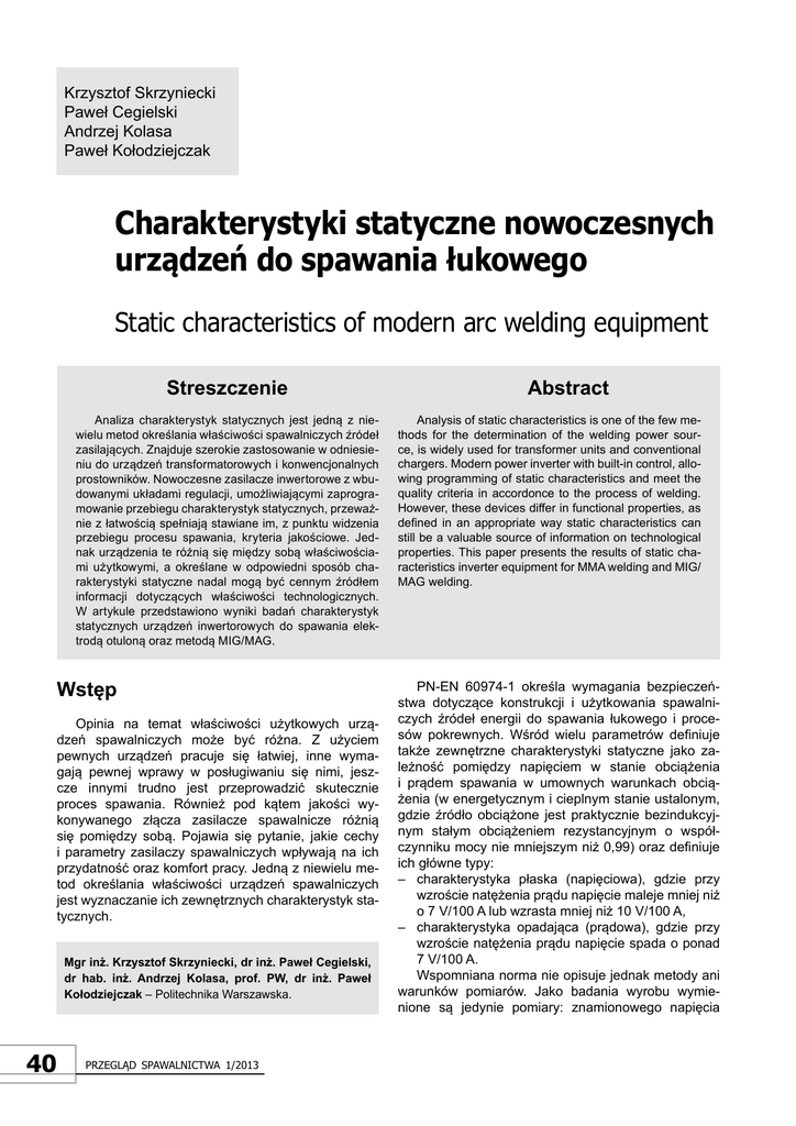 Charakterystyki statyczne nowoczesnych urządzeń do spawania