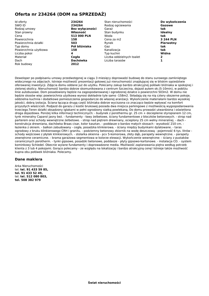 Oferta nr 234264 (DOM na SPRZEDAŻ)