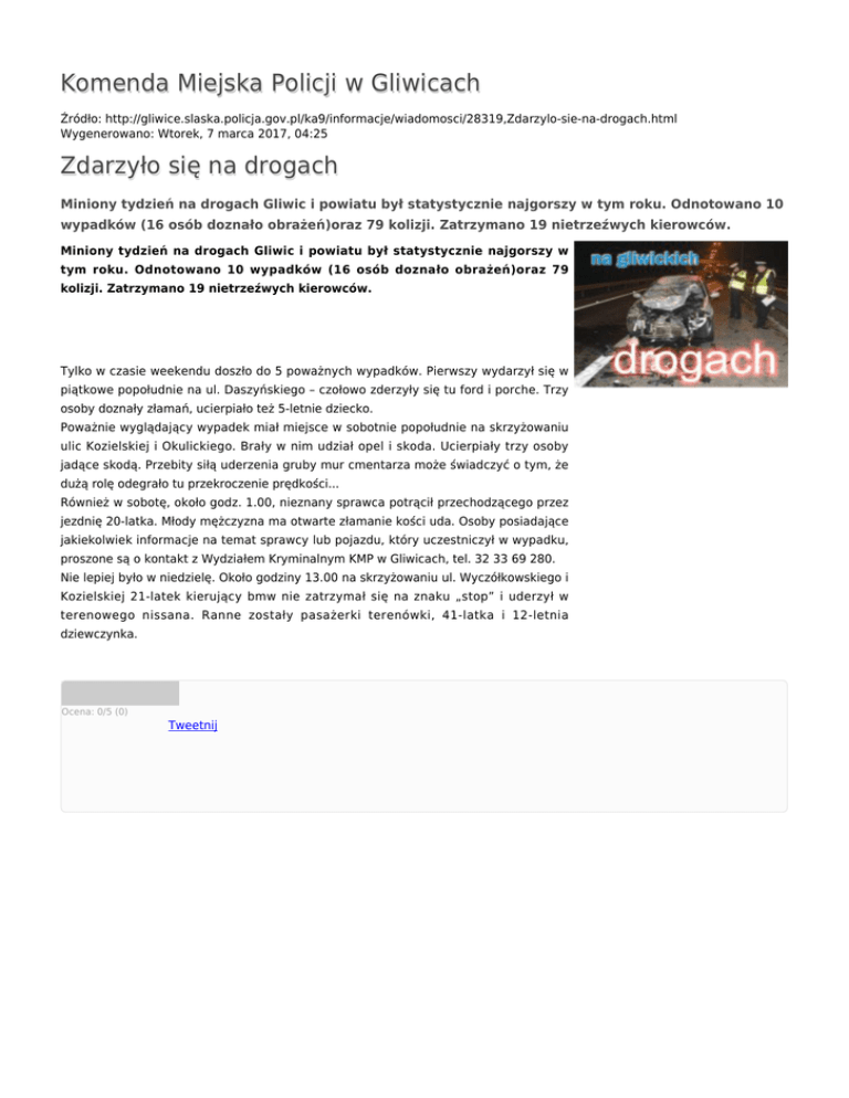 Komenda Miejska Policji w Gliwicach Zdarzyło się na drogach