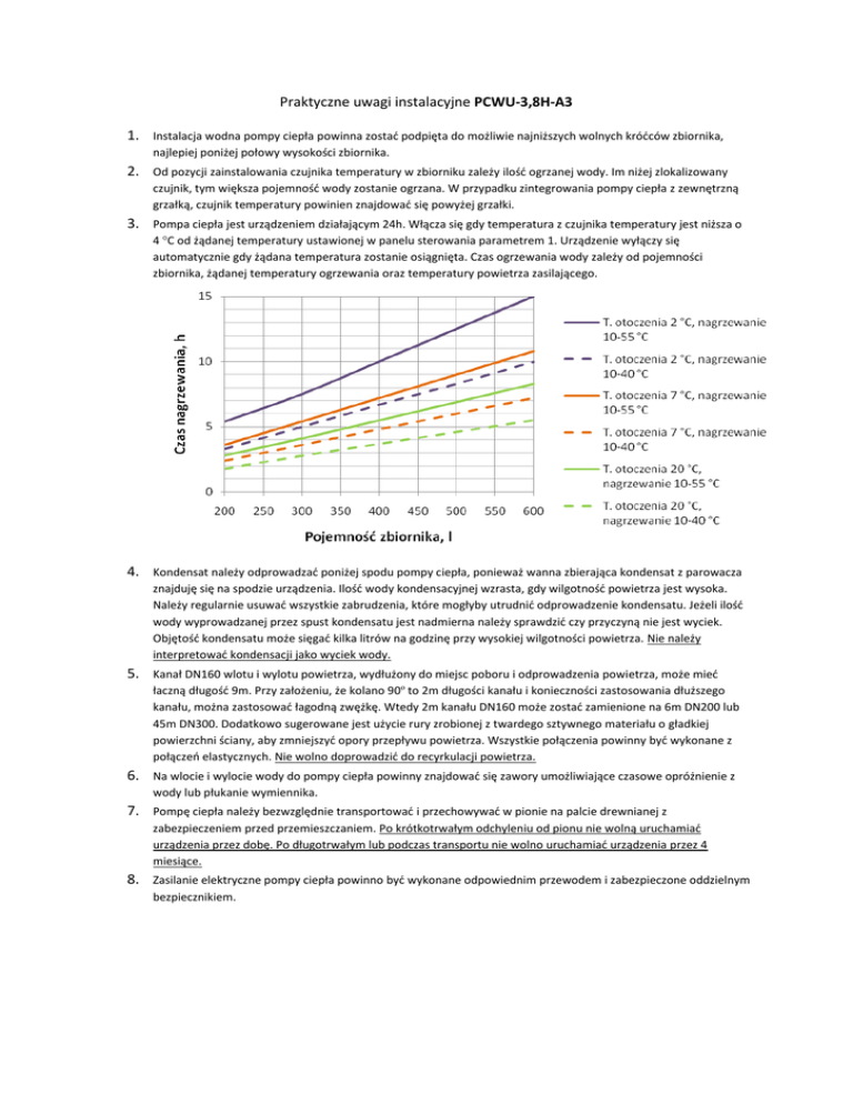 Praktyczne uwagi instalacyjne PCWU-3,8H-A3