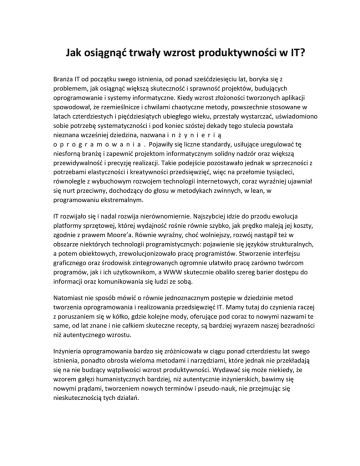 Jak osiągnąć trwały wzrost produktywności w IT?