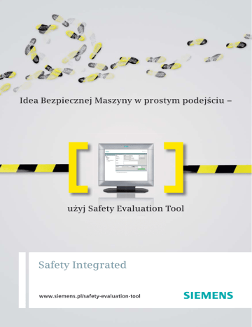 Idea Bezpiecznej Maszyny w prostym podejściu – użyj Safety Evaluation Tool Safety Integrated www.siemens.pl/safety-evaluation-tool Safety Evaluation Tool jest częścią programu Safety Integrated opracowanego przez firmę Siemens. Umożliwia projektowanie systemów zabezpieczających w prosty, nieskomplikowany sposób. Posiada bazę podzespołów, przez co pozwala szybko zestawić gotowe rozwiązania sprzętowe systemów zabezpieczających. Promowana przez nas technologia bezpieczeństwa jest zgodna z wszystkimi obowiązującymi standardami europejskimi. W pełny sposób została zaimplementowana do narzędzia Safety Evaluation Tool. Informacje dodatkowe: www.siemens.pl/safety-integrated Zastosowanie certyfikowanych produktów według określonych standardów bezpieczeństwa pozwala na obniżenie ryzyka, a przez to bezpośrednio na minimalizację ilości wypadków. Produkty Siemens Safety Integrated posiadają odpowiednie certyfikaty i dopuszczenia. Ich dane można sprawdzić w bazie produktów Safety Evaluation Tool. Istotne dla użytkownik normy: IEC 62061 Bezpieczeństwo maszyn – Bezpieczeństwo funkcjonalne elektrycznych, elektronicznych i programowalnych elektronicznych systemów sterowania związanych z bezpieczeństwem ISO 13849-1 Bezpieczeństwo maszyn – Elementy systemu sterowania związanego z bezpieczeństwem Część 1: Ogólne zasady projektowania Narzędzie Safety Evaluation Tool – Korzyści z zastosowania: ■ Zgodność z normami bezpieczeństwa: automatyczne przeliczanie funkcji bezpieczeństwa zgodne z aktualnymi normami (PL, SIL) ■ Natychmiastowy wynik: raport zgodny z normami ■ Narzędzie przetestowane przez TÜV ■ Szybka ocena jakości funkcji bezpieczeństwa (PL, SIL) ■ Szybki dostęp do aktualnych danych produktów ■ Wygodna archiwizacja: projekty można zapamiętywać na lokalnym PC i otwierać ponownie według potrzeb ■ Szybka i prosta obsługa: biblioteki przykładów dla większości przypadków ■ Darmowe korzystanie z narzędzia online* ■ Serwis i wsparcie na całym świecie (* Obowiązują jedynie typowe opłaty za dostęp do Internetu) Safety Evaluation Tool Idea bezpiecznej maszyny w prostym podejściu Safety Evaluation Tool (SET) oblicza zabezpieczenia wg norm IEC 62061 i ISO 13849-1. Jego funkcjonalność została przetestowana przez TÜV uzyskując opinię prostego, pewnego oraz szybkiego narzędzia do oceny funkcji zabezpieczających. Wynikiem końcowym pracy SET jest raport zgodny z obowiązujacymi normami, który można dołączyć do dokumentacji maszyny jako potwierdzenie jej poziomu bezpieczeństwa. Konieczność: Maksymalne bezpieczeństwo personelu, maszyn i produkcji Bezpieczeństwo funkcjonalne służy ochronie personelu i maszyn. Poprawne funkcjonowanie systemu sterowania oraz podzespołów zabezpieczających maszynę są podstawą osiągnięcia odpowiednio wysokich, wymaganych poziomów bezpieczeństwa dla ludzi, sprzętu, maszyn a także produkcji. Środki: Analiza ryzyka i środków ochronnych Ryzyko definiuje się i ocenia na podstawie analizy ryzyka, po której określa się środki jego minimalizacji. Bezpieczeństwo: Zgodność z Europejską Dyrektywą Maszynową dzięki dokumentacji zgodnej z normami Poprawne wdrożenie norm IEC 62061 lub ISO 13849-1 zapewnia bezpieczeństwo poprzez domyśną zgodność z nową dyrektywą UE, która zacznie obowiązywać z końcem 2009 roku. Zastosowanie w/w norm pozwala osiągnąć poziom bezpieczeństwa w sposób zgodny z obowiązyjącą dyrektywą – jest to podstawą uzyskania deklaracji CE. Bezpieczeństwo w prostym podejściu: Safety Evaluation Tool Narzędzie online, przetestowane przez TÜV, prowadzi użytkownika krok po kroku – od specyfikacji struktury systemu bezpieczeństwa, poprzez dobór komponentów, aż do określenia osiągniętego poziomu bezpieczeństwa (SIL/PL). Raport końcowy, zgodny z normami, dokumentuje bezpieczeństwo maszyny i może być częścią jej dokumentacji technicznej. Krok po kroku – zgodnie z normami przygotowywanie dokumentacji maszyny w Safety Evaluation Tool Wybierając Safety Evaluation Tool decydujesz się na prosty sposób poświadczenia bezpieczeństwa Twojej maszyny. Oprogramowanie to w sposób ukierunkowany prowadzi Cię przez proces przygotowania raportów wynikowych. W fazie rozpoczynania nowego projektu analizuje się obszary bezpieczeństwa i określa funkcje bezpieczeństwa (kroki od 1 do 3). W kolejnym kroku tworzy się podsystemy i wypełnia je danymi (krok 4). Po ocenie rezultatu zbiorczego, otrzymujesz raport końcowy, który zawiera przejrzyste informacje o stanie (kroki 5 i 6). www.siemens.pl/safety-evaluation-tool Krok 1 Krok 2 Definiowanie funkcji bezpieczeństwa Dobór norm, na bazie których należy wykonać obliczenia Np. „ochrona strefy niebezpiecznej” funkcja bezpieczeństwa ■ Kurtyna świetlna naruszona ➔ Rozłączenie styczników ➔ Wymagania pozostają niezmienne Np. norma funkcji bezpieczeństwa “ochrona strefy niebezpiecznej” ■ IEC 62061 lub ■ ISO 13489-1 Krok 3 Krok 4 Opis funkcji bezpieczeństwa Tworzenie podsystemów lub SRP/CS detekcji, oceny, reakcji Funkcja bezpieczeństwa „ochrona strefy niebezpiecznej” składa się z podsystemów: detekcja (kurtyna świetlna), ocena (system przetwarzający dane) i reakcja (styczniki) Detekcja Ocena Reakcja Kurtyna świetlna Modułowy system bezpieczeństwa Styczniki Wprowadzenie danych: Dobór produktu z bazy danych Wprowadzenie wymaganych PL lub SIL Wynik: Bezpieczeństwo (SIL) lub Poziom Zapewnienia Bezpieczeństwa (PL) i PFHD podsystemu lub SRP/CS Krok 5 Krok 6 Sprawdzenie wyniku końcowego dla obliczanej funkcji Przygotowanie raportu do umieszczenia w dokumentacji maszyny Informacje zawarte w niniejszej broszurze zawierają jedynie ogólny opis względnie cechy jakościowe, które w konkretnym przypadku w opisanej formie nie zawsze będą odpowiadały rzeczywistości lub które mogą się zmienić wskutek dalszego rozwoju produktów. Po