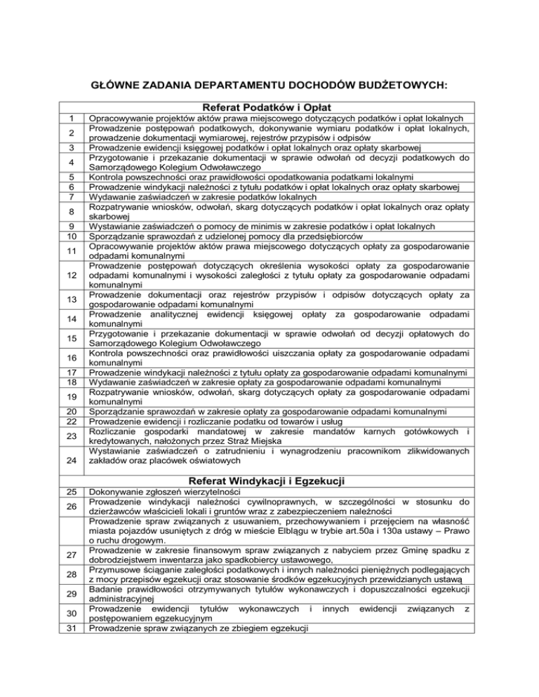 GŁÓWNE ZADANIA DEPARTAMENTU DOCHODÓW