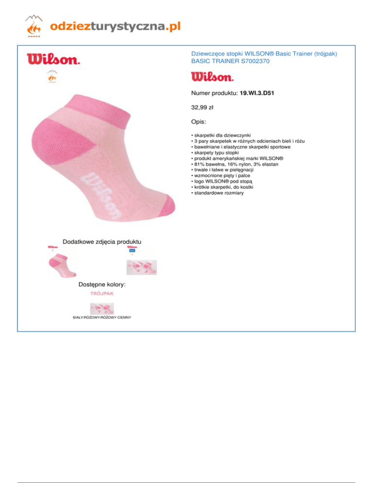 Dziewczęce stopki WILSON® Basic Trainer (trójpak)