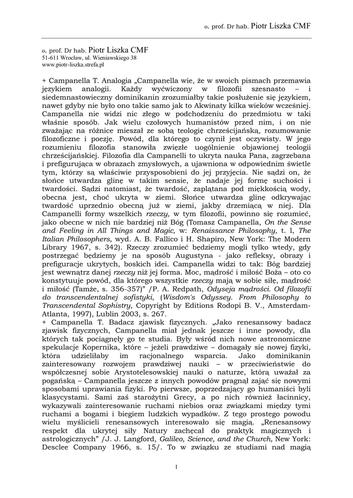 Campanella T - prof. Dr hab. Piotr Liszka CMF