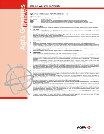 Ogolne Warunki Sprzedazy Agfa Graphics Sp. z o.o.