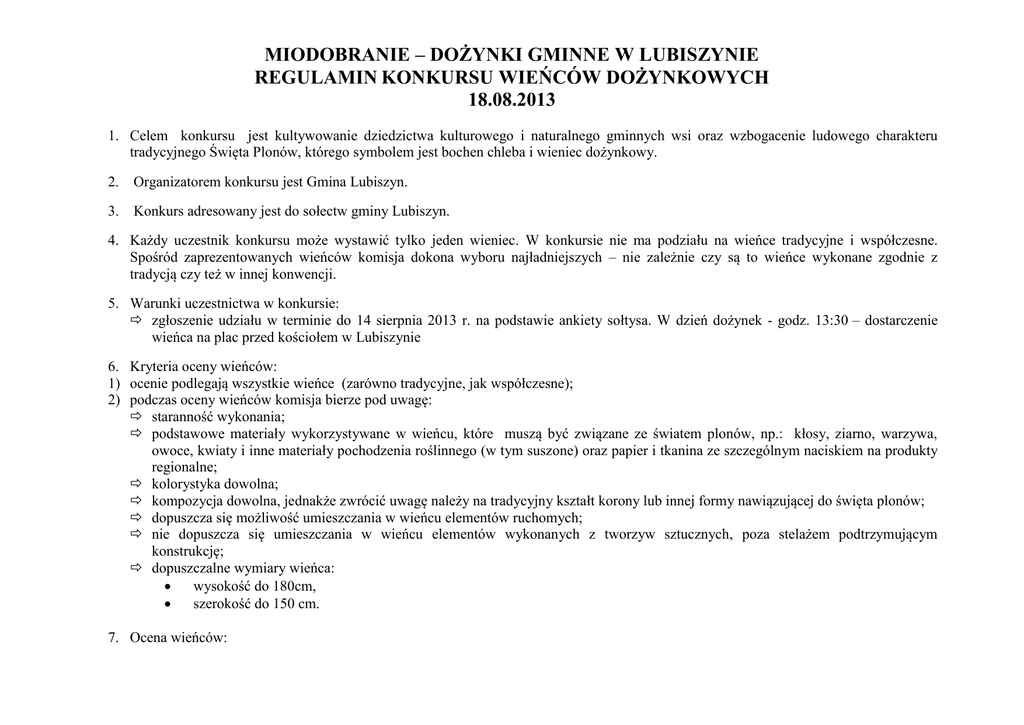 Regulamin - GMINA LUBISZYN