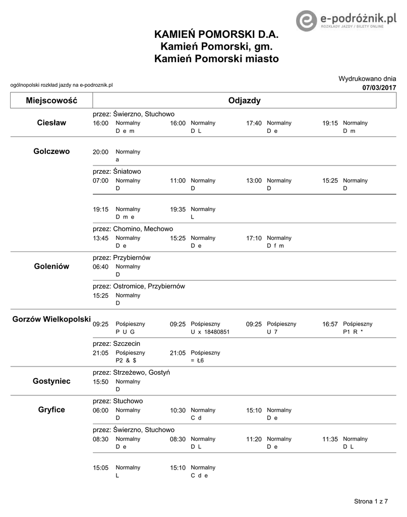 Kurs wykonywany przez PKS Łódź i PKS Kamień Pomorski tel. 042 630-02-64, 091