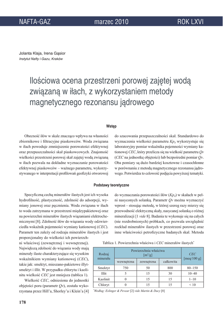 Ilościowa ocena przestrzeni porowej zajętej wodą związaną w iłach