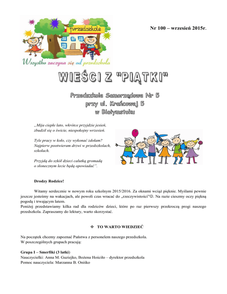 Wieści z Piątki numer 100 - Przedszkole Samorządowe Nr 5 w