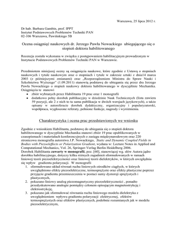 Nowackiego do oceny jako dorobek habilitacyjny jak i całokształt dorobku
