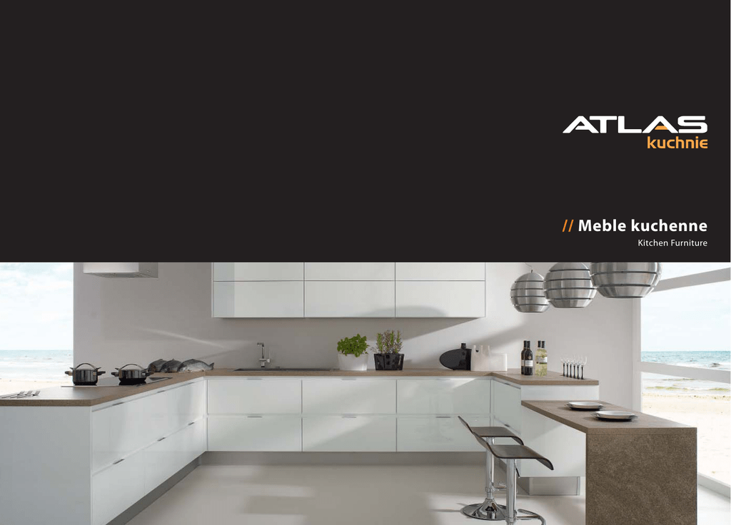 // Meble kuchenne Kitchen Furniture // Meble kuchenne Kitchen Furniture 2001 Złoty Medal Międzynarodowych Targów Poznańskich, 2001 Dobry Wzór Instytutu Wzornictwa Przemysłowego, 2002 Godło Dobre Bo Polskie, 2011 Złoty Medal Międzynarodowych Targów Poznańskich 2001 2001 2002 2011 2001 Gold Medal of the Poznań International Fair, 2001 Good Design of the Institute of Industrial Design, 2002 "Dobre Bo Polskie" (Good Because Polish) Certificate, 2011 Gold Medal of the Poznań International Fair Ponad 30 lat tradycji. Atlas Meble Kuchenne Sp. z o.o. jest producentem najwyższej jakości mebli kuchennych. Firma funkcjonuje na rynku już od ponad 30 lat. W szerokiej ofercie znajdują się meble nowoczesne i klasyczne. Produkcja realizowana jest przy wykorzystaniu nowoczesnych technologii i parku maszynowego – maszyn sterowanych numerycznie. Wykorzystujemy również najlepsze rozwiązania konstrukcyjne oraz materiały i półprodukty do produkcji, które spełniają wszystkie europejskie normy w zakresie jakości, higieniczności i wytrzymałości mebli. Szeroki program produkcyjny zawiera 900 brył, które obejmują szafki dolne, górne, barkowe, medium, pawlaczowe oraz szafki do zabudowy sprzętu AGD. Oferujemy również 40 modeli frontów, dostępnych w ponad 200 kolorach i 5 typach wykończeń. Firma Atlas Meble Kuchenne Sp. z o.o. intensywnie funkcjonuje również na rynku deweloperskim, poprzez realizację dużych projektów w kraju i za granicą. Najlepszą referencją jest fakt, że po długotrwałym i szczegółowym procesie selekcji wśród różnych dostawców mebli kuchennych, Atlas Meble Kuchenne został wybrany jako jedyny polski dostawca mebli dla firmy Skanska. 4 // Oktawia listwowa 6 // Oktawia palisander 8 // Oktawia bakłażan 10 // Oktawia jabłoń indyjska 12 // Patrycja 14 // Patrycja czarna 16 // Dominika 18 // Jowita 20 // Nela 22 // Marzena 24 // Luizjana 26 // Agata 28 // Lucyna 30 // Magma Over 30 years of tradition. Atlas Meble Kuchenne Sp. z o.o. is a manufacturer of high quality kitchen furniture. The company has been operating on the market for over 30 years. We offer a wide range of modern and classic furniture. In its production we use modern technologies and machinery resources – numerically controlled machines. We also apply the best construction solutions and use furniture manufacture materials and semi-finished products which fulfil all the European norms as regards quality, hygienicity and resistance of the furniture. The wide production programme comprises 900 furniture elements, which include lower, upper, liquor, medium, storage cabinets and cabinets for casing domestic appliances. We also offer 40 facing models. They are available in 5 finishes and there are over 200 colours to choose from. The company Atlas Meble Kuchenne Sp. z o.o. operates actively also on the development market, by executing big projects within the country and abroad. The best recommendation is the fact that, following a long and detailed process of selection among various suppliers of kitchen furniture, Atlas Meble Kuchenne has been selected as the only Polish supplier of furniture for the company Skanska. 3 // Oktawia listwowa 4 // Oktawia listwowa Niepowtarzalny, nacechowany nowoczesnością powiew luksusu. Prostota kształtów i perfekcja wykonania tej kuchni, spełniają marzenia o doskonałości. Kuchnia wyróżniona złotym medalem Międzynarodowych Targów Poznańskich 2011, umożliwia płynne przejście z przestrzeni kuchennej do powierzchni mieszkalnej dzięki zastosowaniu niskich szafek typu living. Wykończenie powierzchni frontów oraz obudów mebli - egzotyczna okleina naturalna heban makasar. Zintegrowany uchwyt listwowy dopełnia walory estetyczne całości. A unique breath of luxury stamped with modernity. The simplicity of the forms and perfect quality of this kitchen furniture make your dreams of perfection come true. The furniture was awarded the Gold Medal of Poznań International Fair 2011. It allows smooth passage from the kitchen to the living space thanks to the use of low, living-type cabinets. The finish of the front surface and furniture casings: exotic natural scaleboard – macassar ebony. The integrated aluminium handle completes the aesthetic values of the whole. 5 // Oktawia palisander Praktyczna i funkcjonalna. Wygodna i elegancka. Zaprojektowana z myślą o przyszłości oraz Twoich potrzebach i wymaganiach. Zastosowane rozwiązania stylistyczne i konstrukcyjne hołdują zasadzie: bezpiecznie, efektownie, oryginalnie. Wyjątkowa na co dzień przez lata. Practical and functional. Comfortable and elegant. Designed to face the future and to meet your needs and requirements. The applied stylistic and construction solutions follow the principle "safely, impressively and uniquely". Unique every day, for years. 6 // Oktawia palisander 7 // Oktawia bakłażan 8 // Oktawia bakłażan Połączenie forniru i lakieru tworzy nastrój spokoju i wygody. Piękne, wyraźne linie forniru egzotycznego palisandru santos dodają wnętrzu dynamiki i lekkości. The combination of veneer and varnish creates an atmosphere of calm and comfort. The beautiful, clear lines of the veneer of the exotic santos palisander add vigour and lightness to your interior. 9 // Oktawia jabłoń indyjska Piękna spokojna biel wykończona w wysokim połysku oraz ciepło okleiny egzotycznej jaką jest jabłoń indyjska, składają się na piękno tej kuchni. Przemyślany dobór materiałów kontrastuje z zaskakującymi rozwiązaniami przestrzennymi. The beautiful restrained white, with high gloss finish, and the warmth of the exotic scaleboard – the Indian apple tree - constitute the beauty of this kitchen. The well thought-out selection of materials stands in contrast with the surprising spatial solutions. 10 // Oktawia jabłoń indyjska 11 // Patrycja Dwie przeciwstawne barwy w wysokim połysku: głęboka zieleń frontów oraz stonowana szarość pozostałych elementów twor