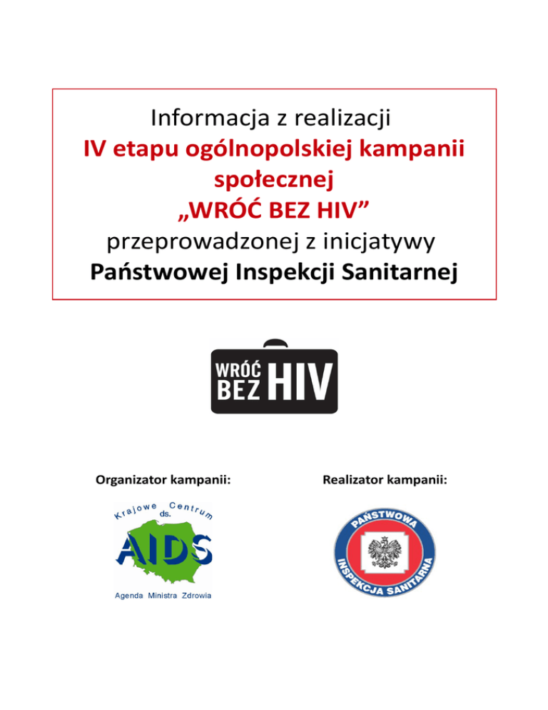 Informacja z realizacji IV etapu ogólnopolskiej kampanii społecznej „WRÓĆ BEZ HIV” przeprowadzonej z inicjatywy Państwowej Inspekcji Sanitarnej Organizator kampanii: Realizator kampanii: Cele kampanii • • • Podniesienie poziomu wiedzy na temat HIV/AIDS Ograniczenie zasięgu epidemii HIV/AIDS Zmniejszenie liczby zakażeń HIV na drodze ryzykownych zachowań Ramy czasowe IV etapu kampanii 8 maja – 13 września 2009 (lato 2009) Grupy docelowe • • • • • • • • • • • • • • • • • studenci uczniowie młodzież korzystająca ze zorganizowanych form wypoczynku podróżni, w tym osoby podróżujące służbowo osoby przebywające na wakacjach dyrekcje szkół, nauczyciele, wychowawcy, pedagodzy szkolni, pielęgniarki szkolne rodzice uczniów uczestnicy imprez masowych (dyskoteki, festyny, koncerty) żołnierze osoby bezrobotne pracownicy urzędów i samorządów lokalnych pracownicy firm przewozowych pracownicy i klienci biur podróży, barów, restauracji pracownicy ośrodków sportu i rekreacji pracownicy klubów osiedlowych pracownicy bibliotek, ośrodków i domów kultury odbiorcy lokalnej prasy, telewizji, stron internetowych Realizatorzy • • • • • • • • • • • • • • • Państwowa Inspekcja Sanitarna (pracownicy pionu oświaty zdrowotnej i promocji zdrowia) Powiatowe Komendy Policji Powiatowe Centra Pomocy Rodzinie Powiatowe Centra Edukacji pracownicy służby zdrowia, np. przychodni ginekologicznych nauczyciele, pedagodzy szkolni, pielęgniarki szkolne specjaliści ds. uzależnień i terapeuci organizatorzy wypoczynku letniego pracownicy urzędów i samorządów lokalnych pracownicy firm przewozowych pracownicy biur podróży, zakładów gastronomicznych, stacji paliw pracownicy ośrodków sportu i rekreacji pracownicy klubów osiedlowych pracownicy bibliotek, ośrodków i domów kultury dziennikarze lokalnych mediów Partnerzy • • • • • • • • • • • • • • • • • • • • • • • • • • • • • • • • • • Państwowa Inspekcja Pracy Urzędy Miast Urzędy Gmin Urzędy Pracy Urzędy Marszałkowskie Starostwa Powiatowe komendy policji władze jednostek wojskowych straż pożarna żegluga pasażerska przedsiębiorstwa komunikacji miejskiej PKP, PKS porty lotnicze zakłady opieki zdrowotnej, szpitale poradnie psychologiczno-pedagogiczne placówki naukowo-wychowawcze uczelnie wyższe, w tym wydziały zamiejscowe placówki wypoczynku letniego ośrodki sportu i rekreacji centra informacji turystycznej biura turystyczne ośrodki i domy kultury Polski Czerwony Krzyż organizacje pozarządowe parafie instytucje prywatne ośrodki doradztwa rolniczego hotele zakłady gastronomiczne stacje paliw lokalne media wydawnictwa agencje reklamowe organizatorzy festiwali muzycznych Przedsięwzięcia w ramach kampanii Formy realizacji kampanii: • szkolenia • wykłady • narady • zajęcia warsztatowe • prelekcje • pogadanki • instruktaże • pokazy • ćwiczenia • konkursy • akcje i imprezy prozdrowotne • formy wizualne • punkty informacyjne • dystrybucja materiałów informacyjno-edukacyjnych • poradnictwo w zakresie profilaktyki HIV/AIDS • badania profilaktyczne • rozmowy indywidualne i grupowe • inne formy Lp. Województwo Przedsięwzięcia w ramach kampanii 1. dolnośląskie - dystrybucja materiałów informacyjno-edukacyjnych WSSE przygotowała i przekazała materiały informacyjne (plakaty, broszury, prezentacje i materiały graficzne) dotyczące kampanii oraz pismo intencyjne o kontynuację działań informacyjnych za pośrednictwem kanałów komunikacji z klientami Urzędów Miast i Gmin w woj. dolnośląskim (strony internetowe jednostek, ekspozycja plakatów, ulotek na tablicach informacyjnych, w punktach obsługi klienta) - konferencja dla przedstawicieli samorządów, dyrektorów szkół i pedagogów, pielęgniarek szkolnych oraz przedstawicieli lokalnych mediów powiatu oławskiego; 50 osób - narady (17) dla 38 osób (współrealizatorzy, partnerzy) - szkolenia (9) dla 566 osób (pedagodzy, uczniowie szkół ponadgimnazjalnych, pracownicy socjalni, biur podróży, funkcjonariusze policji) - pogadanki (23) dla 735 uczniów szkół ponadpodstawowych, poborowych - prelekcje (22) dla 341 osób (młodzież podlegająca poborowi i kwalifikacji wojskowej) - zajęcia edukacyjne (4) pt. „Wyprawka w dorosłe życie” dla 1149 uczniów szkół ponadgimnazjalnych - punkty informacyjno-konsultacyjne (7), z których skorzystały 1042 osoby - dystrybucja materiałów informacyjno-edukacyjnych oświatowych, opieki zdrowotnej. do placówek kulturalno- - konkursy (3) dotyczące problematyki HIV/AIDS pod hasłem ,,O życiu decydują chwile” dla uczniów gimnazjów (150 osób ) - projekcje filmów o tematyce HIV dla 575 uczniów szkół ponadgimnazjalnych - wystawy (5) dla społeczności lokalnej - imprezy (6), w których uczestniczyło ponad 6000 osób. W trakcie Studenckich Juwenaliów oraz imprez rekreacyjno-sportowych m. in.„Górale na start” zorganizowano punkty informacyjno–edukacyjne dla studentów wyższych uczelni podczas których przeprowadzono rozmowy indywidualne i grupowe nt. zachowań chroniących przed zakażeniem HIV. Prowadzono rozdawnictwo materiałów oświatowozdrowotnych, prezerwatyw, eksponowano plakaty. 2. kujawsko -pomorskie - narady organizowane w celu nawiązywania nowych sojuszy, kontynuowania działań podjętych w ramach kampanii, oraz określania najefektywniejszych kierunków działań. Narady adresowane były do: przedstawicieli urzędów miast i gmin, pracowników PIS, kierowników/wychowawców w placówkach letniego wypoczynku dzieci i młodzieży, dyrektorów, kadry kierowniczej ośrodków wczasowych, pracowników biur podróży, pracowników służby zdrowia, dyrektorów szkól, nauczycieli i pedagogów szkolnych, właścicieli pubów (51 narad, 117 uczestników). - szkolenia prowadzone przez pracowników PIS (O