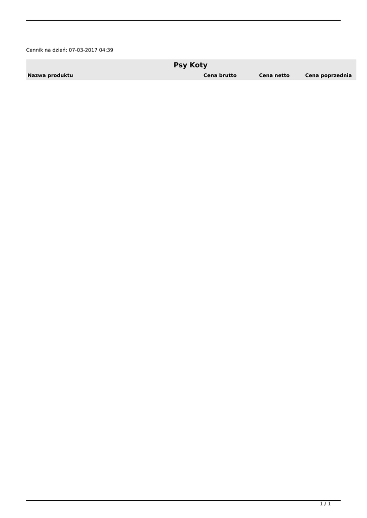 Cennik na dzień: 07-03-2017 04:39 Psy Koty Nazwa produktu Cena brutto Cena netto Cena poprzednia 1/1 Powered by TCPDF (www.tcpdf.org)