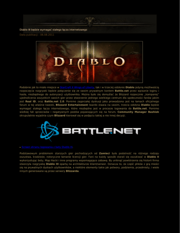 Diablo III będzie wymagać stałego łącza internetowego Data publikacji : 06.08.2011 Podobnie jak to miało miejsce w StarCraft II Wings of Liberty, tak i w trzeciej odsłonie Diablo jedyną możliwością rozpoczęcia rozgrywki będzie połączenie się ze swoim prywatnym kontem Battle.net przez wpisanie loginu i hasła, niezbędnego do autoryzacji użytkownika. Można było się domyślać że Blizzard rozpocznie „kampanię” ujednolicenia wszystkich swoich gier przez stworzenie jednego wielkiego centrum dla społeczności fanów jakim jest Real ID, oraz Battle.net 2.0. Pomimo zagorzałej dyskusji jaka prowadzona jest na łamach oficjalnego forum w tej właśnie kwestii, Blizzard Entertainment twardo stawia na swoim, trzecia odsłona Diablo będzie wymagać stałego łącza internetowego, które niezbędne jest w procesie logowania do Battle.net. Pomimo wielkiej fali sprzeciwów i negatywnych postów pojawiających się na forum, Community Manager Bashiok skrupulatnie wyjaśnia czym Blizzard kierował się w podjęciu takiej a nie innej decyzji. ● Screen ekranu logowania z bety Diablo III. Podstawowym problemem starszych gier pochodzących od Zamieci była podatność na różnego rodzaju oszustwa, kradzieże, notoryczne łamanie licencji gier. Fani na każdy sposób starali się oszukiwać w Diablo II wykorzystując boty, Map Hacki i inne programy wspomagające zabawę. By uniknąć powtórzenia się historii firma stworzyła rozgrywkę Diablo III opartą na architekturze klient/serwer. Oznacza to, że część plików z grą mieści się na prywatnych dyskach użytkowników, a niektóre elementy takie jak potwory, podziemia, przedmioty, i wiele innych generowane są przez serwery Blizzarda. Jak sam Bashiok wyjaśnił w swojej wypowiedzi, dużo się nauczyli z architektury jaka stworzona została na potrzeby World of WarCraft. Wykorzystali tą wiedzę by stworzyć coś jeszcze potężniejszego i bardziej przyjaznego użytkownikowi. Dlatego w przypadku wystąpienia małych bugów, firma będzie mogła szybko zareagować wprowadzając niewielkie łatki do gry zwane również hotfixami. W gruncie rzeczy istotną rolę odgrywają również wszystkie zabezpieczenia, niezbędne do zablokowania osobom trzecim możliwości ingerowania w konta użytkowników. Chyba nikt nie chce by w pewnym momencie konto na Battle.net zostało shakowane, a Blizzard nie mając żadnego narzędzia nie mógłby nam pomóc. Niestety pojawiają się również minusy zastosowania takiego rozwiązania. Mowa tu przede wszystkim o braku możliwości rozpoczęcia rozgrywki w trybie offline, co może stanowić przeszkodę dla osób nie posiadających stałego połączenia z Internetem. Autor: Dominik "BeLial" Misiak Data publikacji : 06.08.2011 Data modyfikacji : 06.08.2011 Liczba wyświetleń tekstu: 12589 Tagi: Battle.Net, Bashiok, Blizzard Entertainment POWRÓT DRUKUJ PDF POLEĆ ZNAJOMEMU Komentarz (156) dodaj komentarz Już niedługo moi drodzy...już niedługo.~Kaminiu 2011/08/09 16:18 ~arghim Z tego co się orientuję to w Polsce aktualizacja jest taka sama jak w każdym innym miejscu na świecie i prędkość łącza powiinna się wyświetlać. PS. Jeśli tak nie jest to może był limit i tylko tym co udało się zaktualizować konto i im wyświetliło łącze będą dopuszczeni do bety :D joke~jaren22 2011/08/09 16:36 Jeżeli po polskie czyli europejskiej aktualizacji nie ma cie podanej prędkości to trzeba w dole ekranu zmienić na AMERYKI > ENGLISH (US) zrobić aktualizację i prędkość neta się pojawi~byKs 2011/08/09 16:54 Ok, dzięki ;) Na razie tego nie zrobię, bo Amerykański battle.net przechodzi jakieś prace konserwacyjne... ciekawe co tam kombinują ;)~arghim 2011/08/09 17:10 15 sierpień ;)~byKs 2011/08/09 17:43 Może zupełnie o Polsce nie zapomną;) na statystykach google: diablo 3 - Polska na 6 miejscu na świecie http://www.google.com/insights/search/?hl=pl#cat=0&q=diablo+3&cmpt=q diablo - 1 miejsce (kategoria gry wideo) diablo 2 - 1 miejsce~Pedroxx 2011/08/09 18:25 dodaj komentarz
