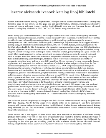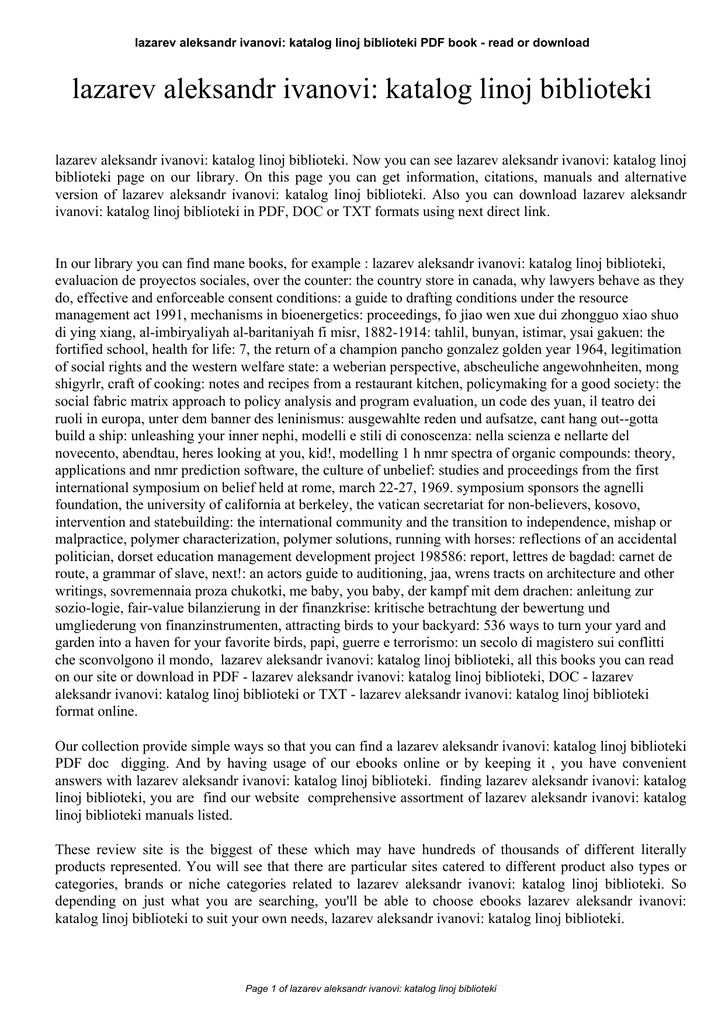 lazarev aleksandr ivanovi: katalog linoj biblioteki PDF book - read or download lazarev aleksandr ivanovi: katalog linoj biblioteki lazarev aleksandr ivanovi: katalog linoj biblioteki. Now you can see lazarev aleksandr ivanovi: katalog linoj biblioteki page on our library. On this page you can get information, citations, manuals and alternative version of lazarev aleksandr ivanovi: katalog linoj biblioteki. Also you can download lazarev aleksandr ivanovi: katalog linoj biblioteki in PDF, DOC or TXT formats using next direct link. In our library you can find mane books, for example : lazarev aleksandr ivanovi: katalog linoj biblioteki, evaluacion de proyectos sociales, over the counter: the country store in canada, why lawyers behave as they do, effective and enforceable consent conditions: a guide to drafting conditions under the resource management act 1991, mechanisms in bioenergetics: proceedings, fo jiao wen xue dui zhongguo xiao shuo di ying xiang, al-imbiryaliyah al-baritaniyah fi misr, 1882-1914: tahlil, bunyan, istimar, ysai gakuen: the fortified school, health for life: 7, the return of a champion pancho gonzalez golden year 1964, legitimation of social rights and the western welfare state: a weberian perspective, abscheuliche angewohnheiten, mong shigyrlr, craft of cooking: notes and recipes from a restaurant kitchen, policymaking for a good society: the social fabric matrix approach to policy analysis and program evaluation, un code des yuan, il teatro dei ruoli in europa, unter dem banner des leninismus: ausgewahlte reden und aufsatze, cant hang out--gotta build a ship: unleashing your inner nephi, modelli e stili di conoscenza: nella scienza e nellarte del novecento, abendtau, heres looking at you, kid!, modelling 1 h nmr spectra of organic compounds: theory, applications and nmr prediction software, the culture of unbelief: studies and proceedings from the first international symposium on belief held at rome, march 22-27, 1969. symposium sponsors the agnelli foundation, the university of california at berkeley, the vatican secretariat for non-believers, kosovo, intervention and statebuilding: the international community and the transition to independence, mishap or malpractice, polymer characterization, polymer solutions, running with horses: reflections of an accidental politician, dorset education management development project 198586: report, lettres de bagdad: carnet de route, a grammar of slave, next!: an actors guide to auditioning, jaa, wrens tracts on architecture and other writings, sovremennaia proza chukotki, me baby, you baby, der kampf mit dem drachen: anleitung zur sozio-logie, fair-value bilanzierung in der finanzkrise: kritische betrachtung der bewertung und umgliederung von finanzinstrumenten, attracting birds to your backyard: 536 ways to turn your yard and garden into a haven for your favorite birds, papi, guerre e terrorismo: un secolo di magistero sui conflitti che sconvolgono il mondo, lazarev aleksandr ivanovi: katalog linoj biblioteki, all this books you can read on our site or download in PDF - lazarev aleksandr ivanovi: katalog linoj biblioteki, DOC - lazarev aleksandr ivanovi: katalog linoj biblioteki or TXT - lazarev aleksandr ivanovi: katalog linoj biblioteki format online. Our collection provide simple ways so that you can find a lazarev aleksandr ivanovi: katalog linoj biblioteki PDF doc digging. And by having usage of our ebooks online or by keeping it , you have convenient answers with lazarev aleksandr ivanovi: katalog linoj biblioteki. finding lazarev aleksandr ivanovi: katalog linoj biblioteki, you are find our website comprehensive assortment of lazarev aleksandr ivanovi: katalog linoj biblioteki manuals listed. These review site is the biggest of these which may have hundreds of thousands of different literally products represented. You will see that there are particular sites catered to different product also types or categories, brands or niche categories related to lazarev aleksandr ivanovi: katalog linoj biblioteki. So depending on just what you are searching, you'll be able to choose ebooks lazarev aleksandr ivanovi: katalog linoj biblioteki to suit your own needs, lazarev aleksandr ivanovi: katalog linoj biblioteki. Page 1 of lazarev aleksandr ivanovi: katalog linoj biblioteki