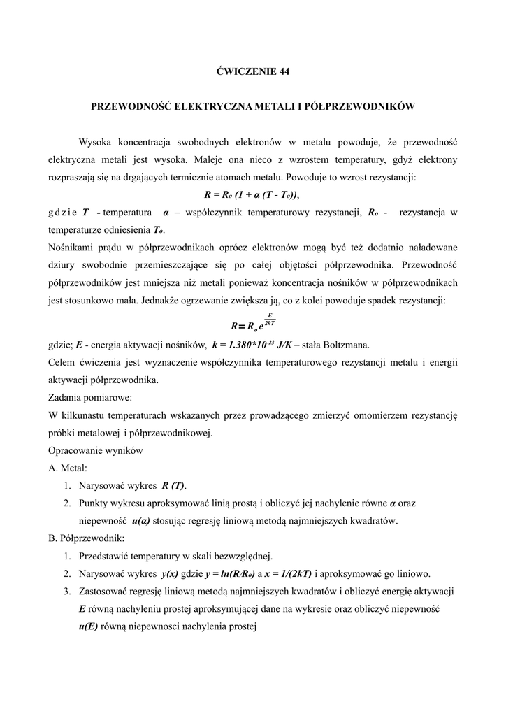 ĆWICZENIE 44 PRZEWODNOŚĆ ELEKTRYCZNA METALI I