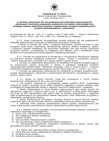 Uchwała Nr 17_2015 Senatu UWr z dnia 25.02.2015 r. w sprawie