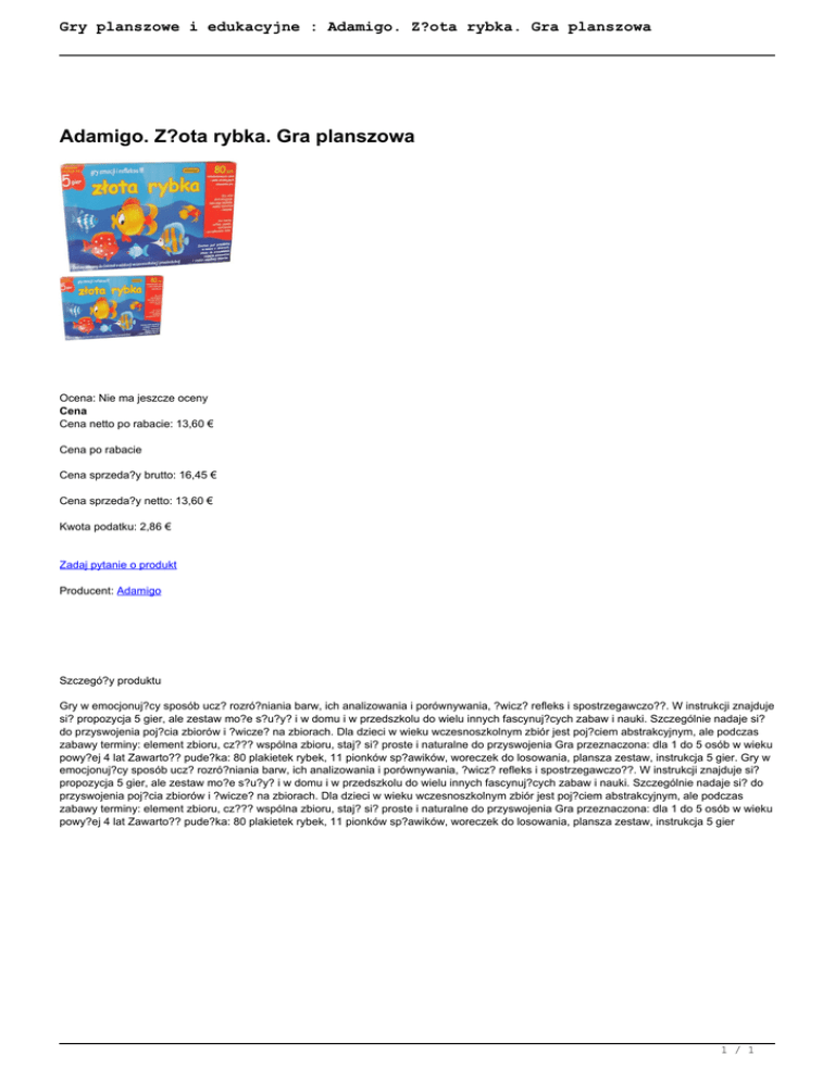 Gry planszowe i edukacyjne : Adamigo. Złota rybka. Gra