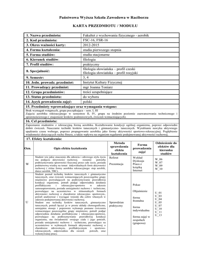 WF - aerobik - Państwowa Wyższa Szkoła Zawodowa w Raciborzu