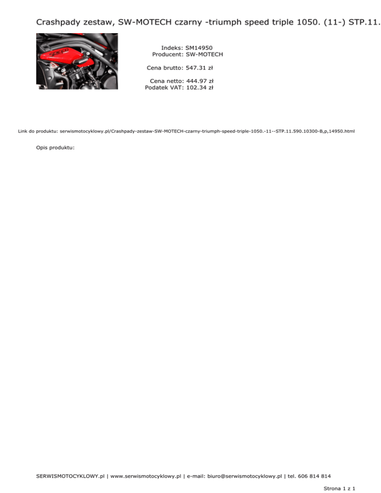 Crashpady zestaw, SW-MOTECH czarny -triumph speed triple 1050. (11-) STP.11. Indeks: SM14950 Producent: SW-MOTECH Cena brutto: 547.31 zł Cena netto: 444.97 zł Podatek VAT: 102.34 zł Link do produktu: serwismotocyklowy.pl/Crashpady-zestaw-SW-MOTECH-czarny-triumph-speed-triple-1050.-11--STP.11.590.10300-B,p,14950.html Opis produktu: SERWISMOTOCYKLOWY.pl | www.serwismotocyklowy.pl | e-mail: [email protected] | tel. 606 814 814 Strona 1 z 1