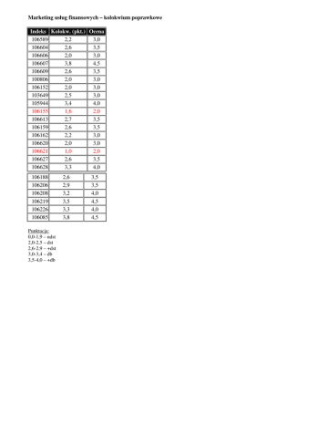 Marketing usług finansowych – kolokwium poprawkowe Indeks