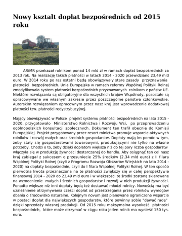 Nowy kształt dopłat bezpośrednich od 2015 roku