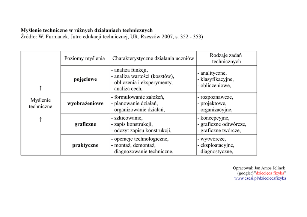 Źródło: W. Furmanek, Jutro edukacji technicznej, UR, Rzeszów 2007, s. 352 - 353)