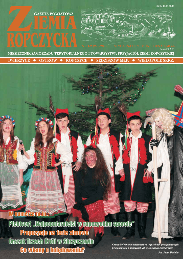 IEMIA Z ROPCZYCKA ISSN 1508-4604 GAZETA POWIATOWA NR 1-2 (279-280) STYCZEŃ-LUTY 2015 CENA 2,50 ZŁ (w tym 5% VAT) MIESIĘCZNIK SAMORZĄDU TERYTORIALNEGO I TOWARZYSTWA PRZYJACIÓŁ ZIEMI ROPCZYCKIEJ IWIERZYCE l OSTRÓW l ROPCZYCE l SĘDZISZÓW MŁP. l WIELOPOLE SKRZ. W numerze m.in.: Plebiscyt „Najpopularniejsi w ropczyckim sporcie” Propozycje na ferie zimowe Orszak Trzech Króli w Skrzyszowie Grupa kolędnicza uczestnicząca w jasełkach przygotowanych przez uczniów i nauczycieli ZS w Łączkach Kucharskich Co wiemy o kolędowaniu? Fot. Piotr Skałuba ROPCZYCE SPIS TREŚCI WIEŚCI Z MAGISTRATU ...............................................................................4-5 OBRADOWAŁA RADA MIEJSKA ..........................................................6 • III sesja • Nowe stawki za wywóz śmieci SPOŁECZEŃSTWO I GOSPODARKA ..........................................................7-12 • Spotkanie opłatkowe • Termomodernizacja budynków krytej pływalni w Ropczycach • Zmiany w świadczeniach rodzinnych • Z życia powiatu subiektywnym okiem • Betlejemskie światło pokoju • Na przełomie roku • Święty Mikołaj w Ropczycach • Harcerska Gwiazdka z nieba • Świąteczny konkurs LGD • Przedświąteczne spotkanie Noworoczny koncert orkiestry dętej 4 stycznia w ropczyckiej hali widowiskowo-sportowej odbył się coroczny koncert ropczyckiej orkiestry dętej pod batutą Edwarda Guzika. Impreza ta cieszy się niesłabnącym powodzeniem wśród mieszkańców naszego miasta i już na stałe wpisała się w kalendarz miłośników muzyki. Patronat nad koncertem sprawował burmistrz Ropczyc Bolesław Bujak. Ciąg dalszy na str. 19 NA KARTACH HISTORII ............................................................................13-14 • A nadzieja znów wstąpi w nas. Co wiemy o kolędowaniu? • Patriotka niezapomniana MIEJSKA I POWIATOWA BIBLIOTEKA PUBLICZNA W ROPCZYCACH ....15-18 • Biblioteka poleca • Rodzinne tradycje w nauce polskiej • Malarstwo w bibliotece • Wirtualne spotkanie z Katarzyną Grocholą • Harmonogram zajęć w MiPBP w Ropczycach podczas ferii • Podsumowanie roku jubileuszowego • Nowa oferta oddziału dla dzieci CENTRUM KULTURY IM. JÓZEFA MEHOFFERA W ROPCZYCACH .......19-22 • Noworoczny koncert orkiestry dętej • Wielkie granie • Przybieżeli do Betlejem • Dom Kultury w Niedźwiadzie proponuje podczas ferii zimowych • Wiejskie Centrum Kultury w Gnojnicy Dolnej zaprasza • Ferie w Centrum Kultury Z PRZEDSZKOLI I SZKÓŁ GMINY ROPCZYCE ..................................23, 26-29 • Przedszkolaki z Lubziny gościły w Dębicy • Jasełka w przedszkolu • Świąteczne spotkanie przy choince • Biegocentryzm, czyli truchtem przez Niedźwiadę • Kontakty interpersonalne na podstawie poezji • Wielopokoleniowe spotkanie w bibliotece • Tak, on jest królem! • Dzieci dzieciom • Niedźwiada czeka na biegaczy i rowerzystów Na zakończenie koncertu burmistrz Bolesław Bujak złożył mieszkańcom noworoczne życzenia. LICEUM OGÓLNOKSZTAŁCĄCE W ROPCZYCACH .................................30-31 • Budujemy przyszłość • Uczniowie LO w Ropczycach ciągle w czołówce! • Naukowe pasje ropczyckich licealistów • Kolejny sukces ropczyckiego licealisty ZESPÓŁ SZKÓŁ W ROPCZYCACH ...........................................................31-32 • Zdzisław Beksiński. Artysta fascynujący i przerażający WIADOMOŚCI Z GMINY OSTRÓW ................................................................33 • W Skrzyszowie maszerował orszak Trzech Króli WIADOMOŚCI Z GMINY WIELOPOLE SKRZYŃSKIE ..............................33-34 • WOŚP w Wielopolu Skrzyńskim • Liga piłki siatkowej • Noworoczny turniej halowej piłki nożnej TO I OWO ...................................................................................................35-40 • Początek roku w ogrodzie • Jak dbać o zwierzęta w zimie • Pielęgnacja cery w różnym wieku • Pierwsze pociągi Pendolino wyruszyły na trasę • Jak oszukać głód? • Dramatyczny stan kręgosłupa u młodzieży • Jak lepiej leczyć choroby nowotworowe? • Problemy i nadzieje WIADOMOŚCI SPORTOWE .....................................................................41-45 • IX Plebiscyt „Najpopularniejsi w Ropczyckim Sporcie - 2014” • Halowy turniej piłki nożnej gimnazjów • Halowy turniej piłki nożnej klas VI • Mikołajkowe zawody pływackie „Wodne harce'2014” • Węgierskie sukcesy sumoków • Turniej mini-koszykówki chłopców • Zawody pływackie • Udany rewanż drużyny z Gnojnicy Dolnej • Bieg świętego Mikołaja IEMIA Z ROPCZYCKA GAZETA POWIATOWA Ropczycka orkiestra dęta. Fot. Witold Szczygieł W nowych układach tanecznych wystąpiły również mażoretki. Wydawca: Towarzystwo Przyjaciół Ziemi Ropczyckiej w Ropczycach. Nakład: 1200 egz. Zespół redakcyjny: Teresa Kiepiel – red. nacz., Elżbieta Kosydar, Agnieszka Szela, Edyta Pazdan, Piotr Skałuba, Jolanta Kaszowska, Marcin Świerad – red. Wielopole Skrz. Współpracują: Katarzyna Sikora, Maria Wójcik, Barbara Traciak (Sędziszów Młp.). Adres redakcji: ul. Bursztyna 1, 39-100 Ropczyce. Dyżury redakcyjne: czwartek w godz. 10.00-12.00 w Centrum Kultury tel. 17 22-18-228. Redakcja zastrzega sobie prawo skracania nadsyłanych tekstów. Za treść poszczególnych artykułów odpowiadają ich autorzy. Druk: Drukarnia „Duet”, tel. 17 87-11-281. Reklamy prosimy przesyłać na e-mail: [email protected], [email protected] www.gazeta-ziemiaropczycka.pl Miesięcznik Powiatowy „Ziemia Ropczycka” jest członkiem Polskiego Stowarzyszenia Prasy Lokalnej ROPCZYCE Wielkie granie Wolontariusze kwestowali w Ropczycach od wczesnego rana. Fot. Jacek Dorobek, Witold Szczygieł W hali widowiskowo-sportowej odbył się koncert, w którym uczestniczyło wielu mieszkańców. XXIII finał Wielkiej Orkiestry Świątecznej Pomocy przeszedł do historii. W tym roku pieniądze 