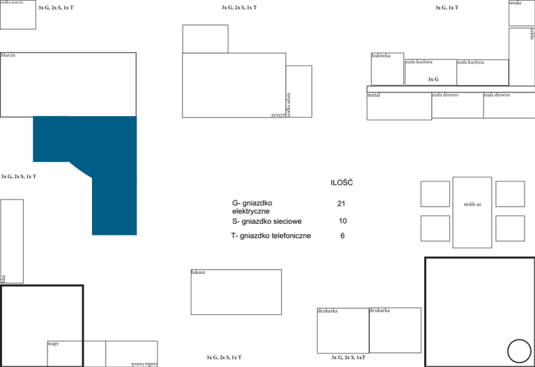 ILOŚĆ G- gniazdko elektryczne S- gniazdko sieciowe T- gniazdko telefoniczne 21 10 6