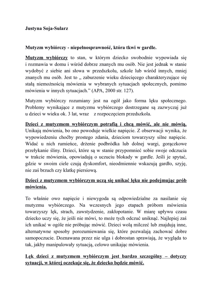 Justyna Soja-Sularz Mutyzm wybiórczy