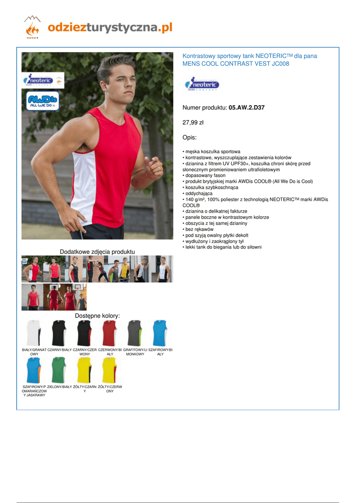 Kontrastowy sportowy tank NEOTERIC™ dla pana MENS COOL CONTRAST VEST JC008 Numer produktu: 05.AW.2.D37 27,99 zł Opis: Dodatkowe zdjęcia produktu Dostępne kolory: BIAŁY/GRANAT CZARNY/BIAŁY CZARNY/CZER CZERWONY/BI GRAFITOWY/LI SZAFIROWY/BI OWY WONY AŁY MONKOWY AŁY SZAFIROWY/P ZIELONY/BIAŁY ŻÓŁTY/CZARN ŻÓŁTY/CZERW OMARAŃCZOW Y ONY Y JASKRAWY Powered by TCPDF (www.tcpdf.org) • męska koszulka sportowa • kontrastowe, wyszczuplające zestawienia kolorów • dzianina z filtrem UV UPF30+, koszulka chroni skórę przed słonecznym promieniowaniem ultrafioletowym • dopasowany fason • produkt brytyjskiej marki AWDis COOL® (All We Do is Cool) • koszulka szybkoschnąca • oddychająca • 140 g/m², 100% poliester z technologią NEOTERIC™ marki AWDis COOL® • dzianina o delikatnej fakturze • panele boczne w kontrastowym kolorze • obszycia z tej samej dzianiny • bez rękawów • pod szyją owalny płytki dekolt • wydłużony i zaokrąglony tył • lekki tank do biegania lub do siłowni
