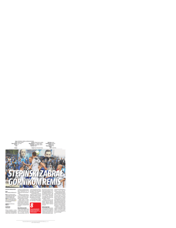 Ocena: Temat: Ruch Chorzów-Prasa Mediatyp: prasa Częstotliwość: dziennik Nakład: 8327 Rozpowszech 4742 niono: AVE: 5 524 PLN STĘPIŃSKI ZABRAŁ GÓRNIKOM REMIS Ruch Chorzów - Górnik Łęczna 2:1 (0:0) Bramki 1:0 Arak 64, 1:1 Śpiączka 88, 1:2 Stępiński 90+2. Ruch: Skaba – Konczkowski, Grodzicki (77 Cichocki), Koj, Oleksy –Surma, Hanzel – Mazek, Lipski, Moneta (87 Ćwielong) – Arak (70 Stępiński). Trener: Waldemar Fornalik Górnik: Prusak – Sasin, Pruchnik, Szmatiuk, Leandro I – Drewniak, Tymiński – Bonin, Pitry (82 Jurisa), Piesio – Grzelczak (65 Śpiączka I). Trener: Andrzej Rybarski Sędziował: Mariusz Złotek (Gorzyce). Widzów: 5401. Daniel Harasim Twitter: @d_harasim Mariusz Stępiński w sobotę w ogóle nie powininen pojawić się na boisku. 21-letni napastnik dopiero dzień wcześniej wrócił z urlopu po wyjeździe na Euro 2016 i sztab szkoleniowy Ruchu długo zastanawiał się, czy umieścić go w meczowej osiemnastce. Waldemar Fornalik miał nosa, bo Stępińskiego posadził na ławce, a w końcówce wprowadził na boisko, czym zapewnił swojej drużynie wygraną. Młody snajper w jednej z ostatnich akcji meczu wykorzystał niepewne wyjście Sergiusza Prusaka i zamienił dośrodkowanie Patryka Lipskiego na bramkę o nominale trzech punktów. Niezasłużona porażka Zielono-czarni mogą pluć sobie w brodę. Gdyby w piłce nożnej punktowano strzeleckie sytuacje, to Górnik zostawiłby chorzowian daleko w tyle. O ile w pierwszej połowie prezentował się (podobnie jak rywale) przeciętnie, o tyle w drugiej był już zdecydowanie lepszy. - Powiedziałem w przerwie chłopakom, że jeżeli chcemy w lidze coś zadziałać, to musimy grać inaczej - przyznawał Andrzej Rybarski, trener Gónika. I rzeczywiście, po zmianie stron łęczyńska ekipa wyglądała o wiele lepiej. - Zaczęliśmy 8 bramek zdobył dla Górnika, wchodząc z ławki, Bartosz Śpiączka. Łacznie „Śpiona” ma ich na koncie już 10. grać szybciej i więcej po ziemi. W pierwszej połowie za dużo było gry górnymi piłkami - zwracał uwagę Przemysław Pitry, pomocnik zielono-czarnych. - Taki Górnik z drugiej połowy, grający do przodu, ofensywnie i stwarzający sobie dużo sytuacji strzeleckich na pewno chce się oglądać - dodawał. Górników stać było tylko na przypadkową bramkę superdżokera Bartosza Śpiączki. „Śpiona”, odkąd jest w Łęcznej, strzelił po wejściu z ławki już osiem goli. Dobry prognostyk Mimo porażki, spotkanie w Chorzowie pokazało, że z Górnikiem nie jest tak źle, jak mogłoby się wydawać. Zespół pokazał się z dobrej strony. Jeżeli nowi zawodnicy zakorzenią się w propo- Wycinek elektroniczny opracowała firma NEWTON Media sp. z o.o. www.newtonmedia.pl FOT. FOT ARKADIUSZ GOLA/POLSKAPRESS Tytuł: STĘPIŃSKI ZABRAŁ GÓRNIKOM REMIS Autor: Daniel Harasim Zródło: Polska Kurier Lubelski Data wydania: 18.7.2016 Specyfikacja: PL - Polskie regiony Strona: 17 Tematyka: publicystyka i opinie Link: Rubryka: Sport nowanym przez Rybarskiego systemie, to fani mogą być o przyszłość drużyny spokojni. Spośród debiutantów najciekawiej zaprezentował się Slaven Jurisa. Chorwat przebywał na boisku ledwie 10 minut, ale było go pełno. Widać,że jest bardzo walecznym, szybkim i niezłym technicznie zawodnikiem. Mógł także zanotować trafienie, ale przy dośrodkowaniu Grzegorza Bonina pokazał, że gra głową nie należy do jego mocnych stron. Ani przez chwilę nie dał odczuć, że przyszedł do Górnika dopiero z... 3. ligi serbskiej. Kolejny mecz zielono-czarni zagrają w poniedziałek 25 lipca o godz. 18. Rywalem Lechia Gdańsk. Już wiemy, że spotkanie na pewno odbędzie się na Arenie Lublin. a ¹