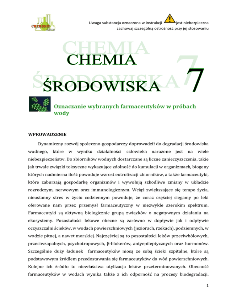Oznaczanie wybranych farmaceutyków w próbach wody