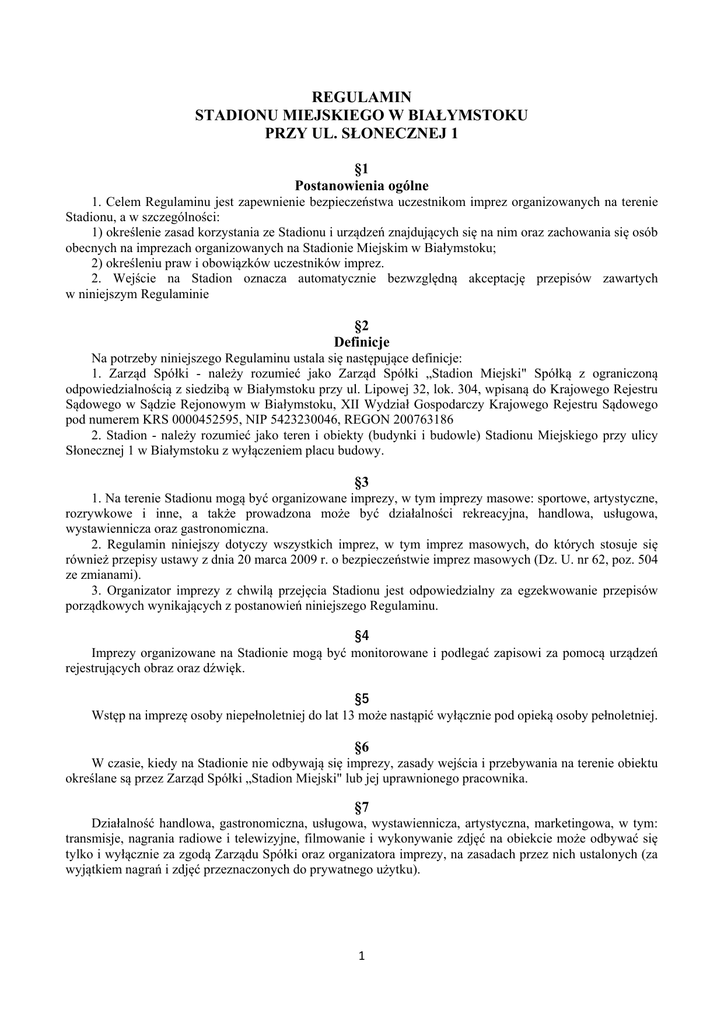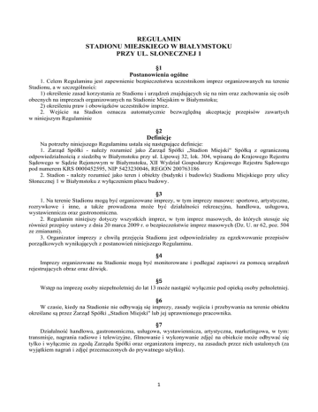 REGULAMIN STADIONU MIEJSKIEGO W BIAŁYMSTOKU PRZY UL