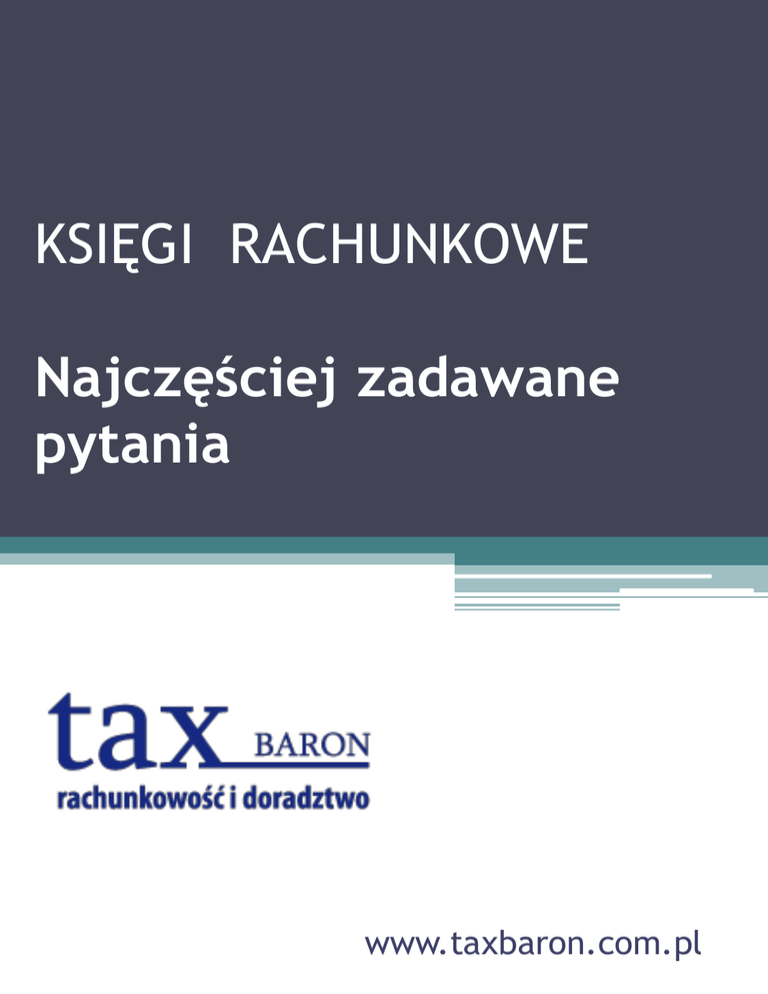 KSIĘGI RACHUNKOWE Najczęściej zadawane pytania www.taxbaron.com.pl 2 Jak odbywa się przejęcie księgowości ? • Sprawne rozpoczęcie współpracy z Klientem ma duże znaczenie, jest realizowane wg przyjętej przez nas procedury przyjęcia. Proces jest tak planowany aby uniknąć jakichkolwiek zakłóceń w funkcjonowaniu firmy. • Rozpoczęcie współpracy przez TAX BARON jest możliwe w dowolnym momencie – od początku każdego miesiąca kalendarzowego, wymaga jednak dostarczenia przez Klienta dokumentacji księgowej w zakresie przedstawionym przez TAX BARON (wg przedstawionej listy). Przygotowanie odpowiednich dokumentów oraz ich przekazanie dokonuje dotychczasowa Główna Księgowa lub biuro rachunkowe. 3 Na czym polegają obowiązki Klienta po podpisaniu umowy ? • Podstawową zasadą działania TAX BARON jest przejęcie wszelkich czynności związanych z obsługą księgową Klienta. Dlatego też zakres obowiązków Klienta jest ograniczony do niezbędnego minimum. • Najważniejsze z nich to: - terminowe przygotowanie dokumentów księgowych, - przekazanie ich do TAX BARON zgodnie z ustalonymi procedurami, - odpowiednio wczesne informowanie TAX BARON o istotnych wydarzeniach w życiu firmy, mogących mieć wpływ na zakres i sposób prowadzenia księgowości. 4 Kto będzie odpowiedzialny za kontakty i współpracę z US i ZUS ? • Kontakt Klienta z organami podatkowymi jest ograniczony do niezbędnego minimum. Pełną odpowiedzialność za reprezentowanie Klienta przed tymi urzędami we wszystkich sprawach związanych z zawartą umową o prowadzenie ksiąg rachunkowych spoczywa na TAX BARON. W tym celu Klient udziela nam odpowiedniego pełnomocnictwa. • W imieniu Klienta składamy w stosownych urzędach deklaracje podatkowe, udzielamy wyjaśnień. W przypadku kontroli US, ZUS, PIP udzielamy kontrolerom wszelkich informacji, przedkładamy księgi oraz dokumenty źródłowe, w porozumieniu z Klientem przygotowujemy i przekazujemy do urzędów pisma związane z kontrolą. 5 Kto ponosi odpowiedzialność za błędy księgowe ? • Za wszelkie konsekwencje prawne i finansowe spowodowane błędami popełnionymi wskutek niewłaściwej obsługi księgowej pełną odpowiedzialność materialną ponosi TAX BARON. W tym celu doradca podatkowy Ryszard Baron nr wpisu 00341, zawarł stosowną umowę ubezpieczeniową (polisa) z TU WARTA S.A. i HDI GERLING. • Aby ograniczyć ryzyko popełnienia błędów, TAX BARON z każdym Klientem opracowuje i wdraża zasady opisywania i obiegu dokumentów księgowych oraz procedur ich przekazywania przez Klienta do TAX BARON. 6 Czy Klient będzie miał dostęp do dokumentów księgowych ? • Wszystkie dokumenty księgowe, związane z bieżącym rokiem rozrachunkowym – zgodnie z ustawą o rachunkowości – znajdują się w naszej siedzibie. • Klient ma prawo wglądu do swoich dokumentów oraz do uzyskania bieżącej informacji telefonicznej, mailowej, faksowej dotyczącej swojej dokumentacji. • Po zakończeniu roku rozrachunkowego i zatwierdzeniu sprawozdania finansowego przez uprawniony organ, dokumenty księgowe zostają przekazane do archiwum Klienta. 7 W jaki sposób są chronione dane Klienta ? • Bezpieczeństwo danych i kontrola dostępu do nich to sprawy traktowane w TAX BARON priorytetowo. Zgodnie z zawartą umową a także obowiązującymi nas przepisami, wynikającymi z ustawy o doradztwie podatkowym, TAX BARON zobowiązuje się zachować w tajemnicy wszelkie informacje, jakie powziął o Kliencie w związku z wykonywanymi usługami – w trakcie współpracy jak i po zakończeniu współpracy. • Dostęp do informacji na temat danych dotyczących finansów Klienta jest chroniony odpowiednim systemem zabezpieczeń. W TAX BARON obowiązują trzy poziomy zabezpieczenia danych: - ograniczenia w dostępie fizycznym, - procedury obiegu dokumentów, - zabezpieczenia w systemie informatycznym. 8 Czy Klient będzie musiał nadal zatrudniać kogoś w księgowości ? • Ponieważ na Kliencie ciąży obowiązek gromadzenia dokumentów i przekazywania ich do TAX BARON, dla zapewnienia sprawnej współpracy konieczne jest wydelegowanie jednego pracownika (lub innej osoby), który będzie odpowiedzialny za kontakty z TAX BARON. • Osoba odpowiedzialna za współpracę z TAX BARON nie musi posiadać szerokich kwalifikacji w zakresie finansów lub księgowości. • TAX BARON zapewnia przeszkolenie wydelegowanej osoby w zakresie nowych procedur obiegu dokumentów księgowych. 9 Co się stanie z dotychczas używanym programem księgowym ? • W zdecydowanej większości przypadków TAX BARON prowadzi księgowość Klientów na swoim oprogramowaniu. Klient pozostawia u siebie moduły oprogramowania służące do obsługi magazynu (jeżeli jest prowadzony), kasy, wystawiania faktur. • Na etapie przejmowania księgowości nasz informatyk wspólnie z informatykiem Klienta bada możliwość elektronicznego transferu danych pomiędzy systemami Klienta a systemem TAX BARON. • W uzasadnionych przypadkach możliwe jest prowadzenie księgowości przez pracownika TAX BARON na systemie informatycznym Klienta. 10 Czy Klient będzie miał dostęp do swoich informacji finansowych ? • TAX BARON oferuje dwa rodzaje raportów. Raporty standardowe, które są definiowane na początku współpracy oraz raporty dodatkowe, zamawiane przez Klienta w trakcie współpracy. Termin opracowania i przekazania Klientowi raportów dodatkowych oraz ich koszt są każdorazowo ustalane z Klientem (pisemna akceptacja). • Wszystkie rodzaje raportów mogą być przekazywane zarówno w wersji papierowej, jak i elektronicznej – pocztą mailową. • Dodatkowo, oferujemy Klientowi nową usługę, polegającą na możliwości zdalnego dostępu do systemu księgowego, co umożliwia bieżący podgląd danych finansowych – podgląd danych przez sieć Internet. 11 Co to jest księgowość ze zdalnym przekazem danych księgowych i jakie są z tego korzyści ? • Klient 