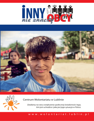 Centrum Wolontariatu w Lublinie Działamy na rzecz zwiększenia społecznej świadomości tego, kim jest uchodźca i jaka jest jego sytuacja w Polsce. w w w. w o l o n t a r i a t . l u b l i n . p l 2 Dlaczego i po co działamy? Na brak społecznej świadomości na temat problemu uchodźstwa oraz obecności i sytuacji uchodźców wskazują badania „Polacy o uchodźcach” wykonane przez TNS OBOP, a zlecone i opublikowane przez Wysokiego Komisarza ONZ ds. Uchodźców. Wynika z nich, że 88 proc. Polaków nigdy nie zetknęło się z uchodźcą. Prawidłową definicję określenia „uchodźca” potrafi podać niespełna 46 proc. pytanych. Tylko 17 proc. Polaków jest za umożliwieniem uchodźcom pozostania w Polsce na stałe. Środowisko uchodźców na Lubelszczyźnie spotyka się z niezrozumieniem ze strony sąsiadów, które wynika z braku informacji o sytuacji uchodźców. Tymczasem w szkołach w woj. lubelskim uczy się ok. 200 dzieci – obywateli innych państw, w tym większość Czeczenów. Każdego dnia spotykają się z polskimi rówieśnikami, którzy często nic o nich nie wiedzą. Projekt pozwala obywatelom na rozwiązywanie trudnych kwestii, z którymi borykają się oni sami i ich otoczenie: ksenofobia, brak tolerancji dla odmienności kulturowej uchodźców, niewiedza na temat uchodźstwa. Zwiększa udział społeczny i tworzy równe szanse dla dyskryminowanych grup, a także wzmacnia organizacje pozarządowe w działaniach, w których nie ma rozwiązań systemowych i rola państwa jest ograniczona. Projekt służy też wymianie doświadczeń pomiędzy nauczycielami, pracownikami socjalnymi, wolontariuszami, urzędnikami i lokalnymi władzami, które identyfikują problem braku społecznej akceptacji dla uchodźców. Gdzie jesteśmy? Celem przedsięwzięcia jest przyczynianie się do wzrostu akceptacji społecznej dla uchodźców i aktywizowanie społeczności lokalnych, zamieszkiwanych przez cudzoziemców (Lublin, Leonów, Bezwola) do podejmowania inicjatyw zwiększających ich wzajemną integrację. Podjęte w projekcie działania służą integracji, wzrostowi akceptacji międzykulturowej ze szczególnym uwzględnieniem partnerskich relacji między cudzoziemcami i rodzinami mieszkającymi w sąsiedztwie Ośrodków dla Cudzoziemców na Lubelszczyźnie. Projekt swe cele realizuje poprzez wielotorowe działania adresowane do zróżnicowanych grup społecznych. Co już zrobiliśmy? Projekt otworzyła konferencja z udziałem ekspertów zagranicznych, podczas której zaprezentowano cele projektu. Trzydziestu wolontariuszy uczestniczyło w dwóch szkoleniach, podczas których zdobyli podstawową wiedzę i umiejętności potrzebne do realizacji w lokalnych partnerstwach projektów promujących akceptację społeczną dla uchodźców. Kolejne szkolenie czeka ich na jesieni. Wolontariusze już wykorzystują swoją wiedzę pracując z uchodźcami i organizując wydarzenia integracyjne. Lida Khamzatova, uchodźczyni z Czeczenii Taki projekt jest bardzo ważny. Wiem, że wolontariusze bardzo się zmieniają, kiedy więcej się o nas dowiadują, kim jesteśmy, skąd przybywamy, od czego uciekamy. To jest potrzebne, i tak powinno być, żeby się uczyli i żeby był na to projekt. Ci, którzy nas poznają, już inaczej na nas patrzą. Tu, gdzie teraz mieszkam, najpierw patrzyli krzywo – skąd ona jest, skąd ta chustka, taki strój… Teraz już ludzie wiedzą, jaka to kultura, jest inaczej, większa życzliwość. Mówili też o nas w telewizji, myślę, że to też pomogło. Ale najważniejsze są te spotkania między ludźmi, można się najwięcej nauczyć. Zawsze lubiłam spotykać się z wolontariuszami. Mój najmłodszy syn miał traumę psychologiczną, pamiętam jak pierwszy raz z takim uśmiechem, radością, zadowoleniem rozmawiał z panią Kingą i panią Anią, kiedy popatrzyłam wtedy na niego i zobaczyłam, jak jest uśmiechnięty, coś mi w środku zadrżało – to są chyba ludzie, którzy nas rozumieją. Zawsze mam to w sercu, że jeśli potrzebuję pomocy, to najlepiej do wolontariuszy, bo nikt nas tak nie przyjmuje jak oni. Zajmują się naszymi dziećmi, dają pierwsze lekcje. Byłoby dobrze, gdyby takich ludzi było więcej. Jednym z nich był Dzień Seniora, który zorganizowali 15 maja w Niemcach pod Lublinem uczestniczący w projekcie wolontariusze ze Szkolnego Klubu Wolontariusza, działającego w miejscowym gimnazjum. Pod wodzą katechety, Witolda Józefackiego, przygotowali program dla starszych mieszkańców gminy. W trakcie części artystycznej znalazł się czas na występ szkolnego zespołu kultury czeczeńskiej, podczas którego uczniowie pochodzący z Kaukazu zaprezentowali swoją barwną kulturę i tradycję. Ponadto można było spróbować specjałów kuchni polskiej i czeczeńskiej, przygotowanych przez wolontariuszy i cudzoziemców. Na uroczystość zostali zaproszeni także seniorzy pochodzący z Czeczenii, obecnie mieszkający w Ośrodku dla Cudzoziemców w pobliskim Leonowie. Inicjatywa była świetną okazją do wzajemnego poznania się mieszkańców ośrodka z lokalną społecznością, a także integracji Polaków i Czeczenów. 3 4 Drugą grupą, która uczestniczyła w oddzielnych szkoleniach, byli zgłoszeni do projektu nauczyciele, pracownicy socjalni oraz przedstawiciele organizacji pozarządowych. Celem szkoleń było dostarczenie uczestnikom informacji umożliwiających im stworzenie lokalnych koalicji na rzecz uchodźców. Uczestnicy poznawali prawne i psychologiczne aspekty uchodźstwa, modele integracyjne, uczyli się, na czym polega edukacja międzykulturowa. Jolanta Woźniak, Katolickie Stowarzyszenie Młodzieży z Dysa, uczestniczka projektu: Uważam, że bez poznania kultury innych narodów trudno jest współpracować z ich przedstawicielami. Oni mają swoje zachowania, zwyczaje, tradycje, których nie znamy i poznanie ich jest podstawą do nawiązania relacji. Żeby wejść do konkretnego środowiska, rodziny, ta wiedz
