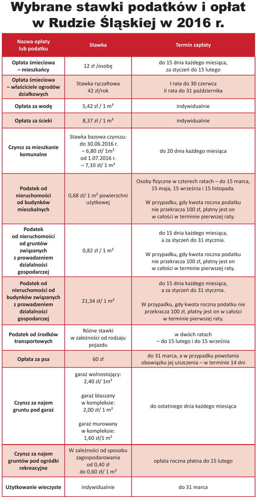 Wybrane stawki podatków i opłat w Rudzie Śląskiej w 2016 r.