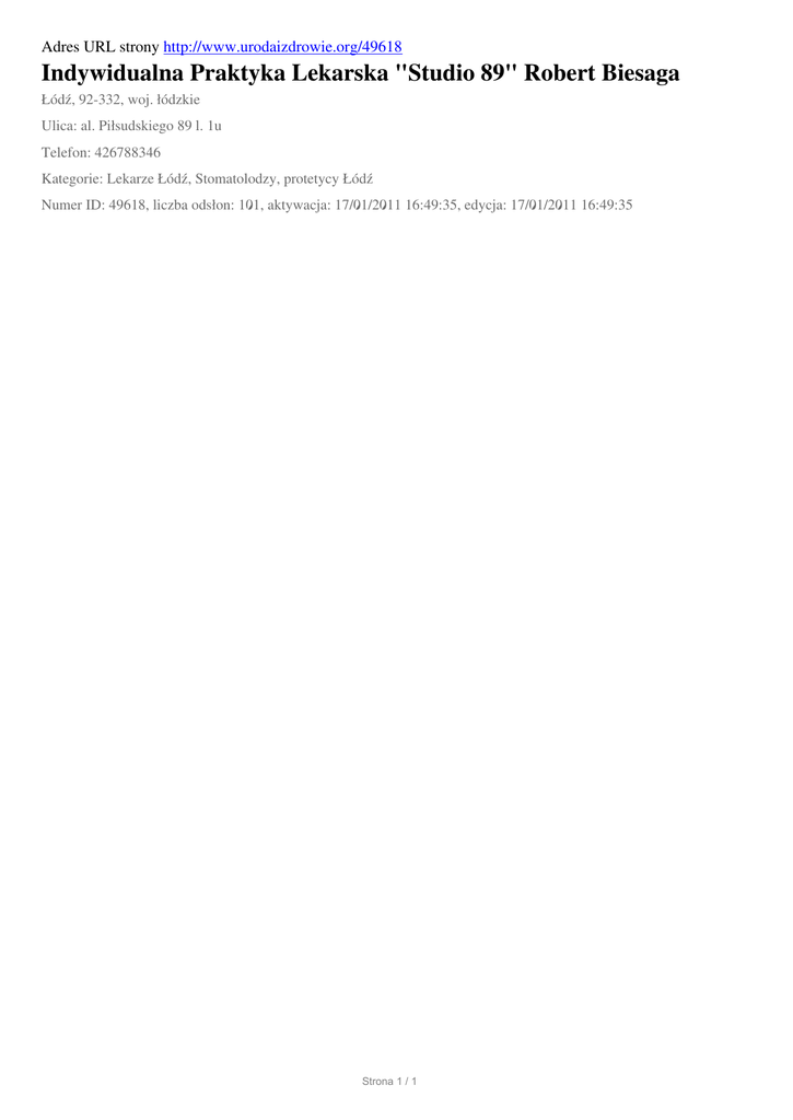 Indywidualna Praktyka Lekarska "Studio 89" Robert Biesaga, Lodz