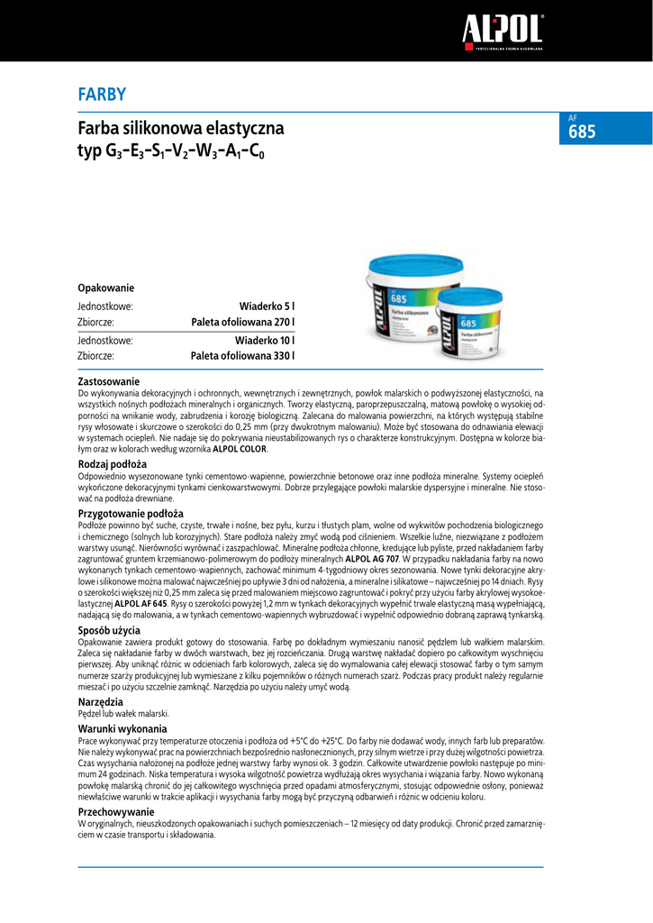 685 Farba silikonowa elastyczna typ G3-E3-S1-V2-W3-A1