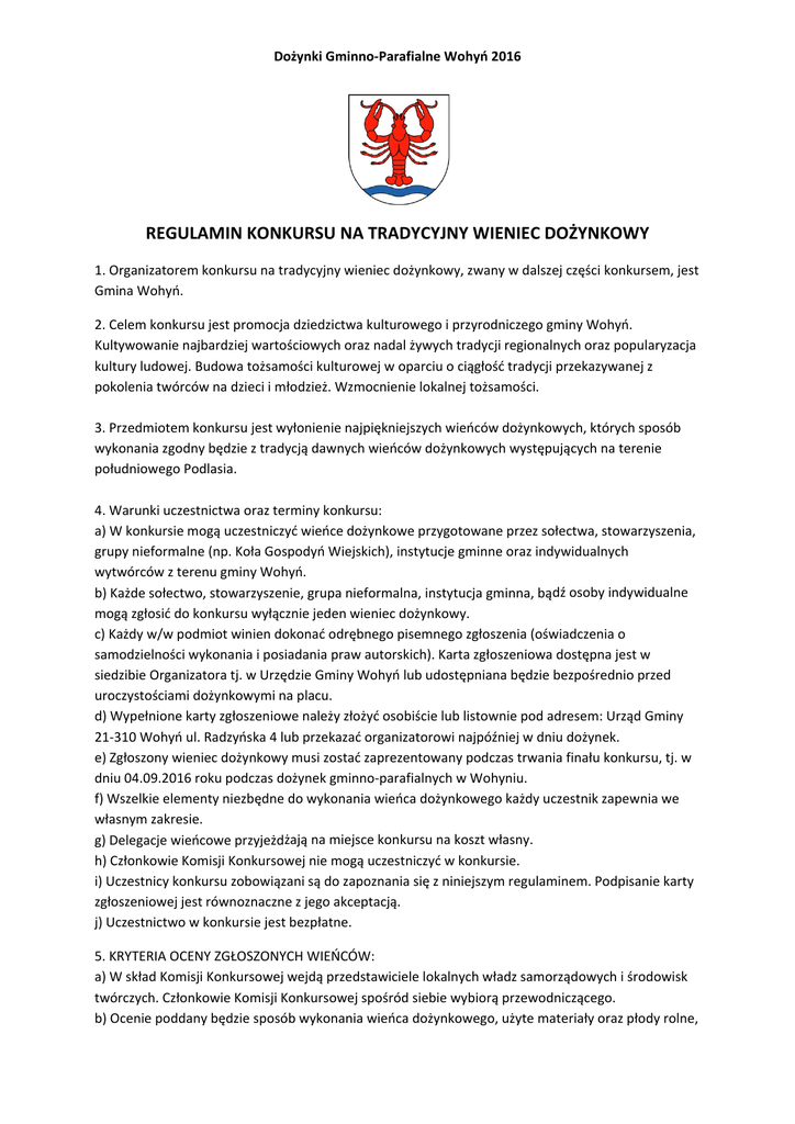 Regulamin wieńce dożynkowe 2016